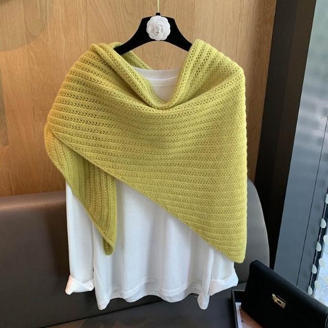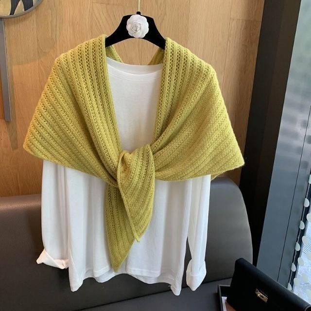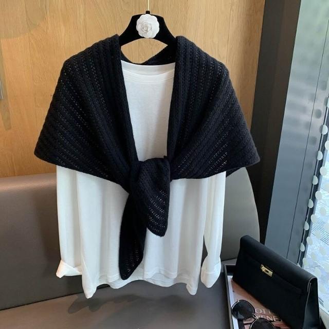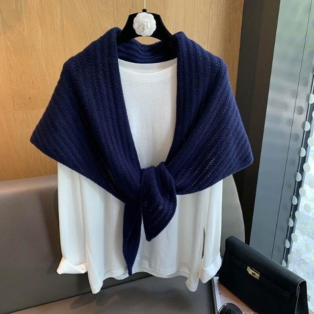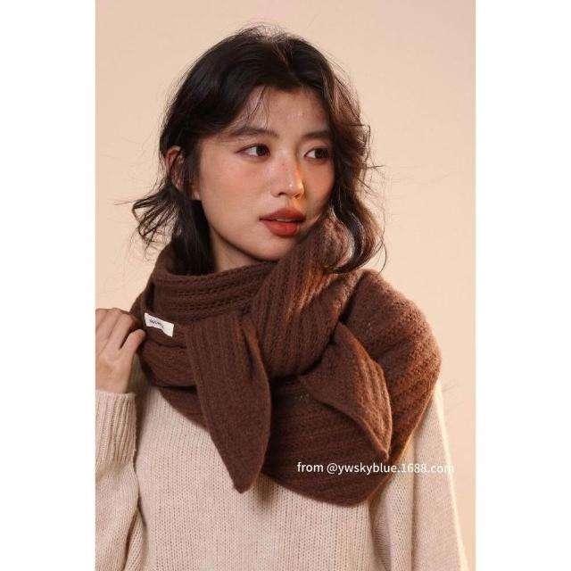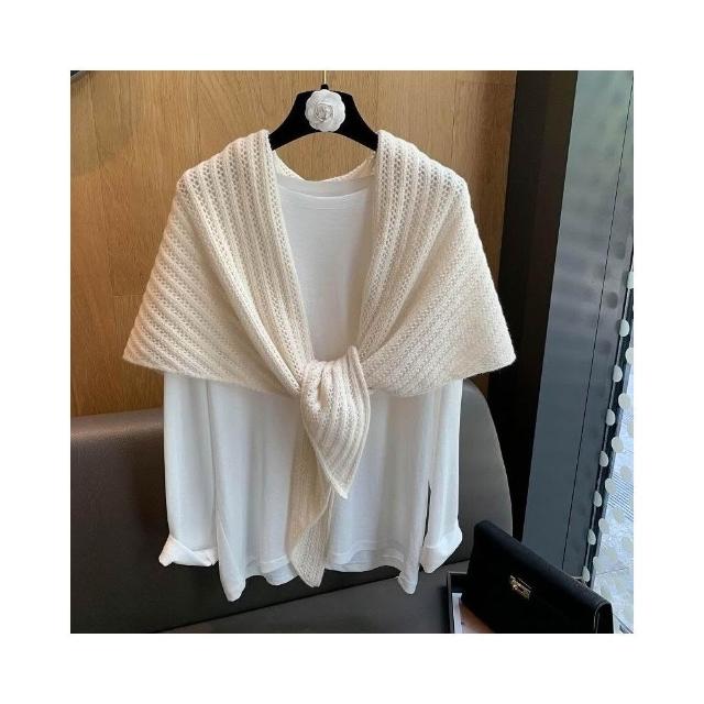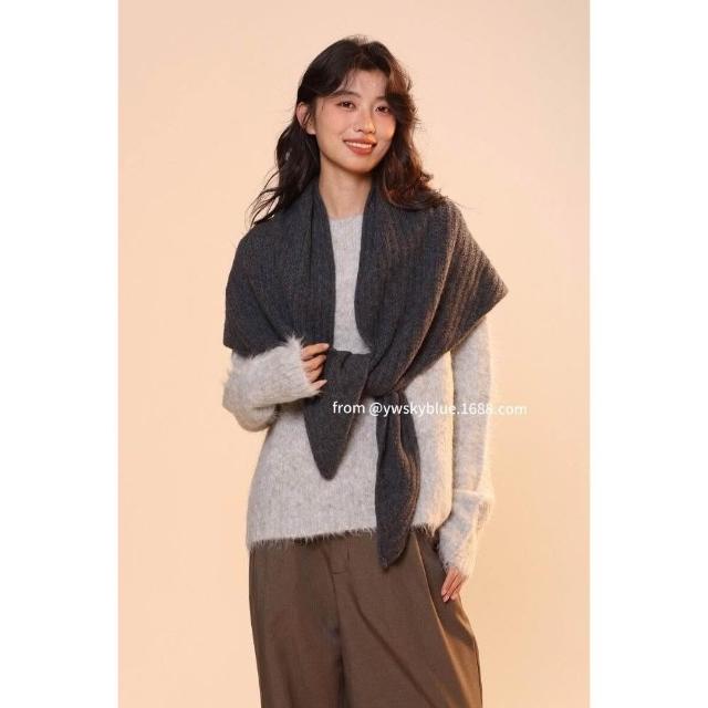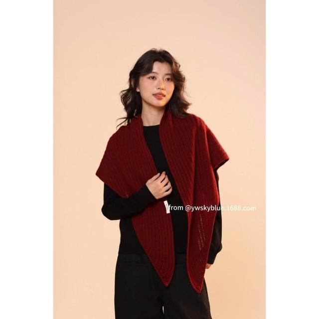 比比優 100%全羊毛 镂空 針織 三角 披肩 女 秋季 新款 時尚 疊穿 坎肩 圍巾女