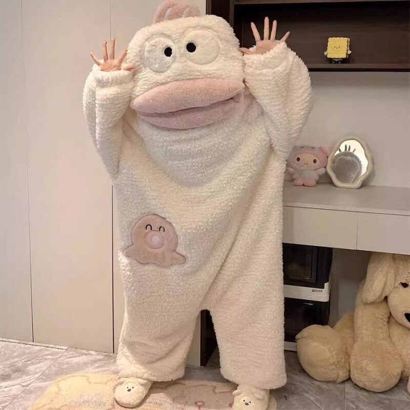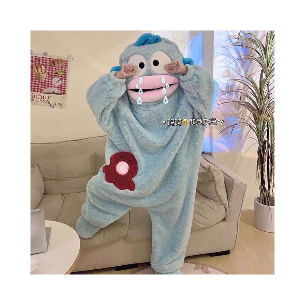卡通小丑魚睡衣 珊瑚絨連體睡衣 加絨連帽睡袍 可愛家居服 柔軟珊瑚絨睡袍 寬鬆趣味連體睡衣