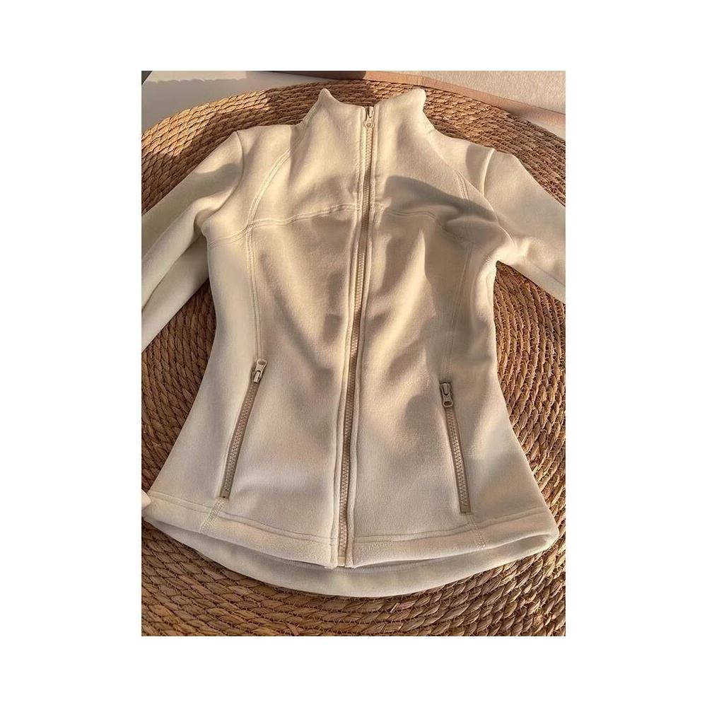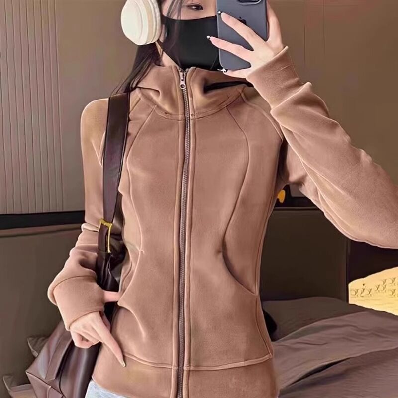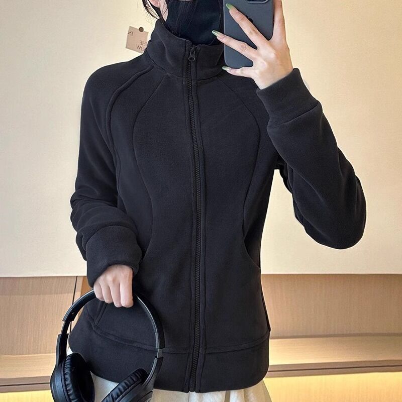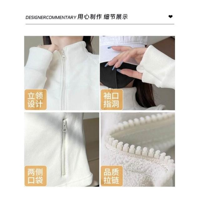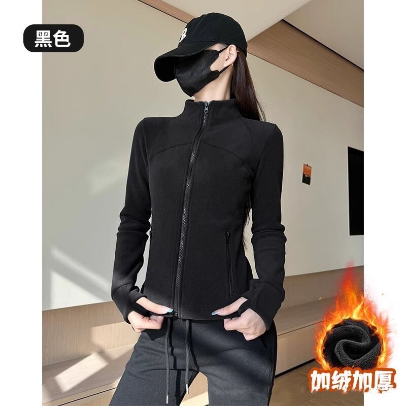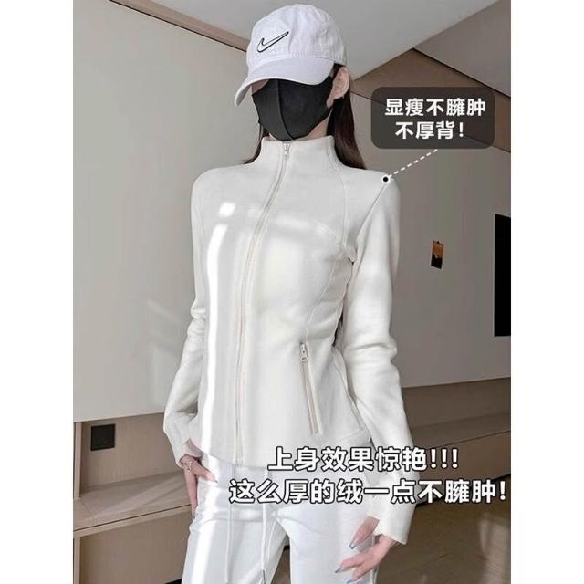 比比優 連帽衫 加絨加厚瑜伽服外套女搖粒絨衛衣冬季修身內膽拉鏈開衫內搭上衣