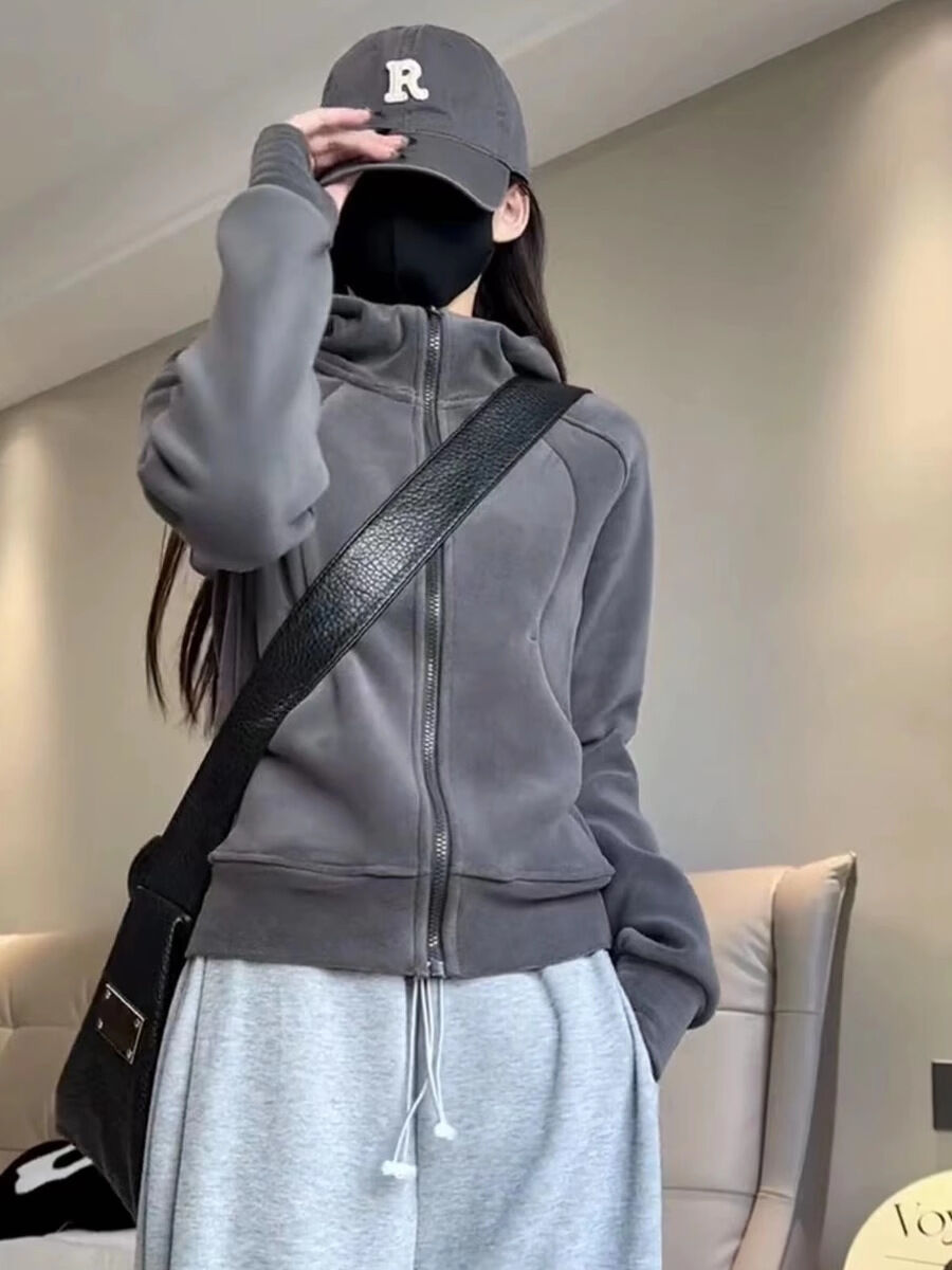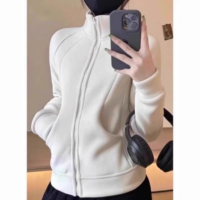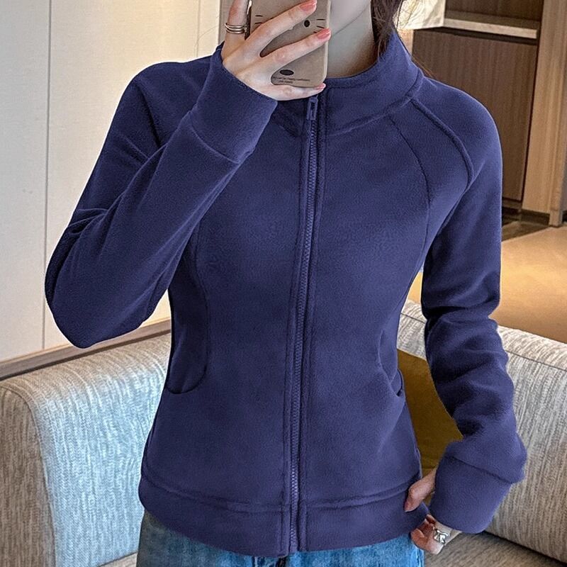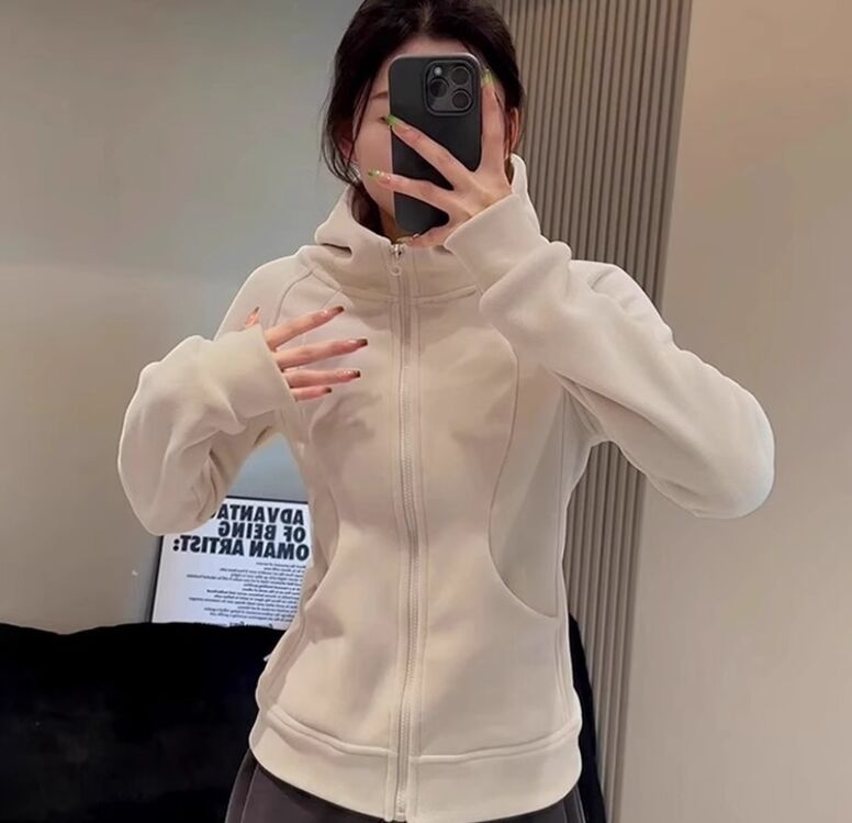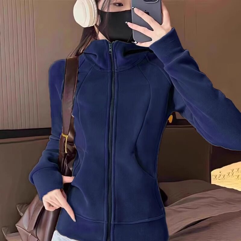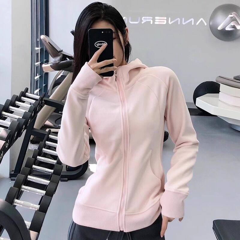 比比優 連帽衫 加絨加厚瑜伽服外套女搖粒絨衛衣冬季修身內膽拉鏈開衫內搭上衣