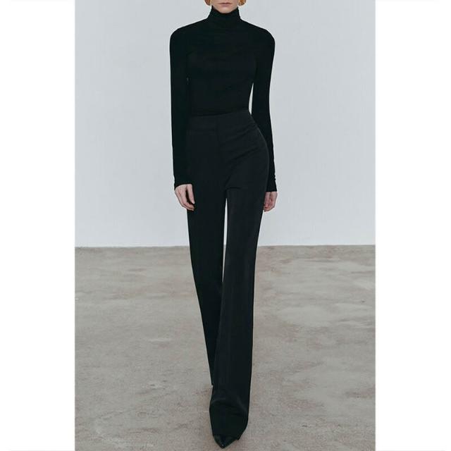 比比優 西裝喇叭褲女士2025春秋新款高腰垂感闊腿褲小個子顯瘦休閑微喇褲