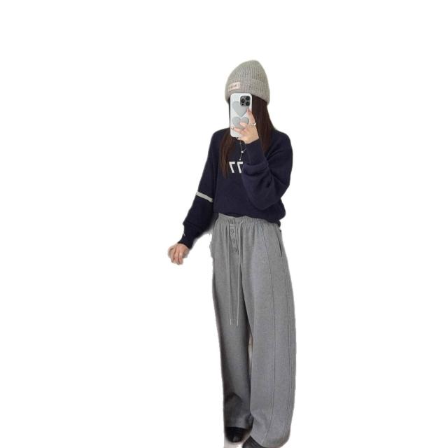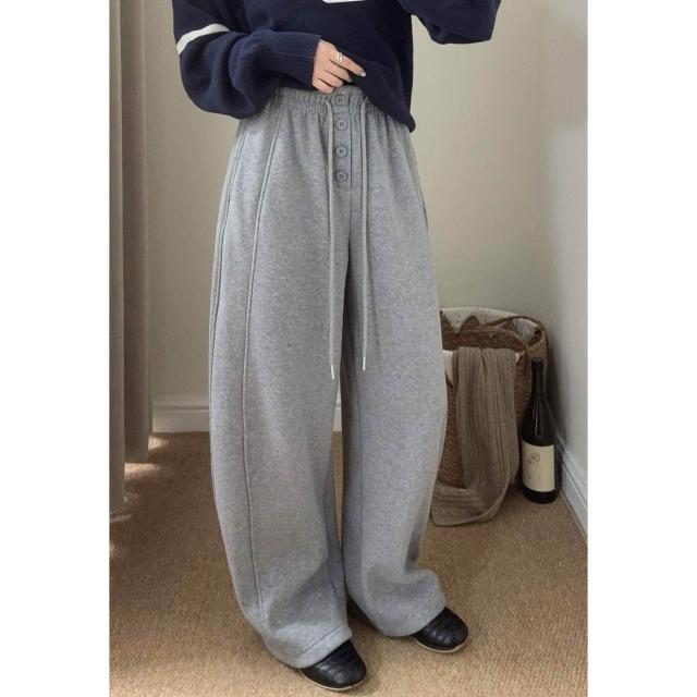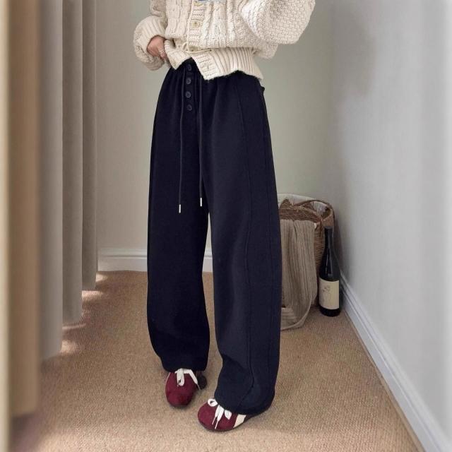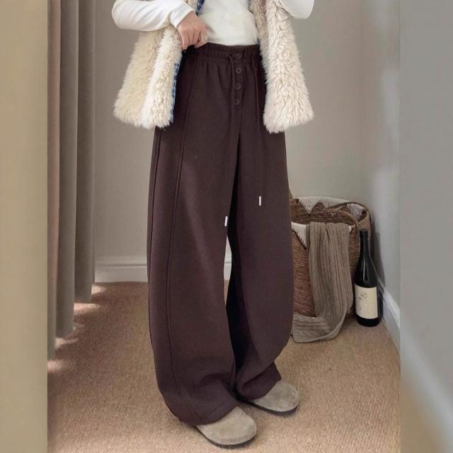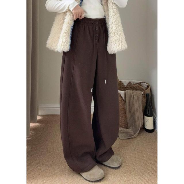 比比優 韓代糯米羊絨系扣加絨彎刀褲女冬季新款寬松百搭垂感休閑褲長褲