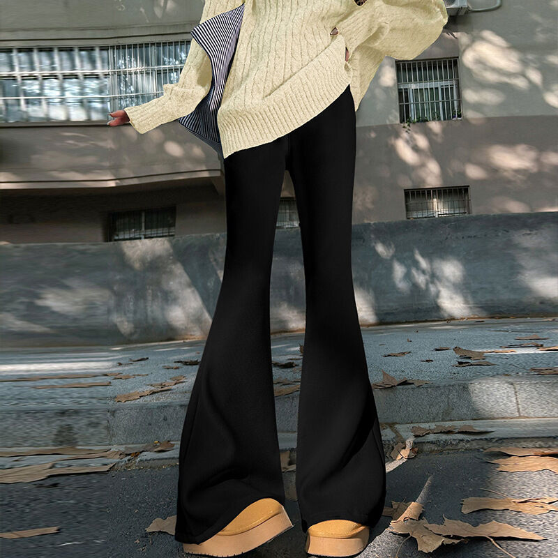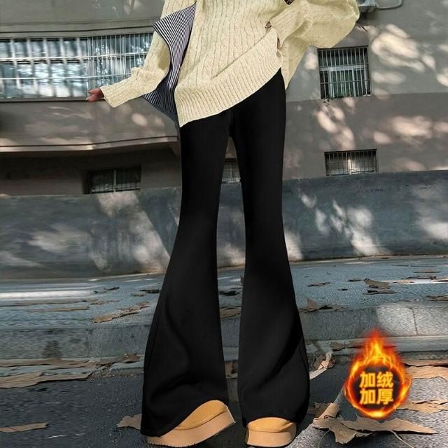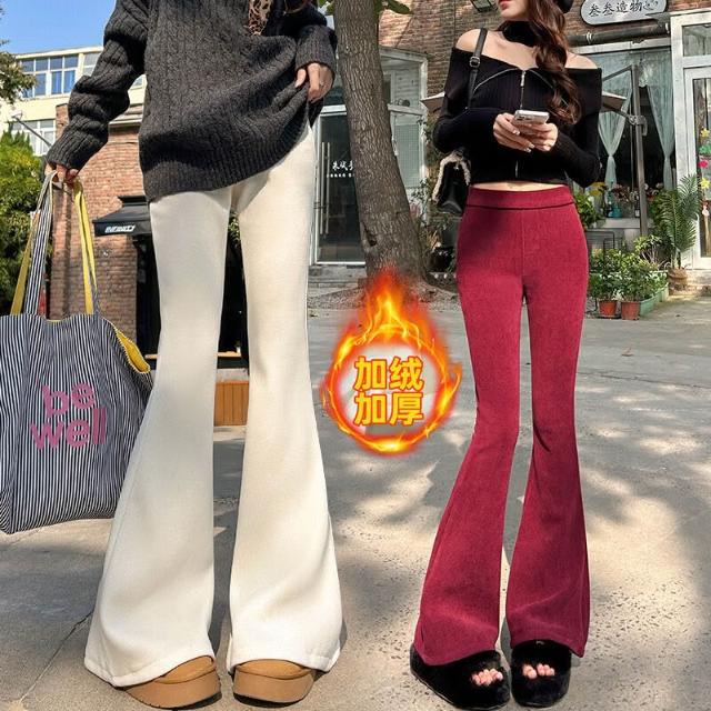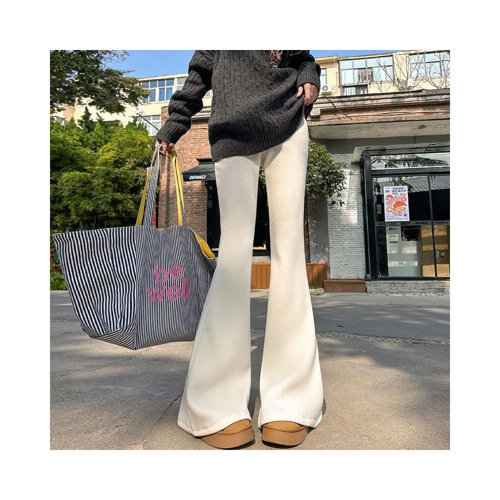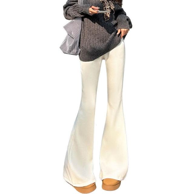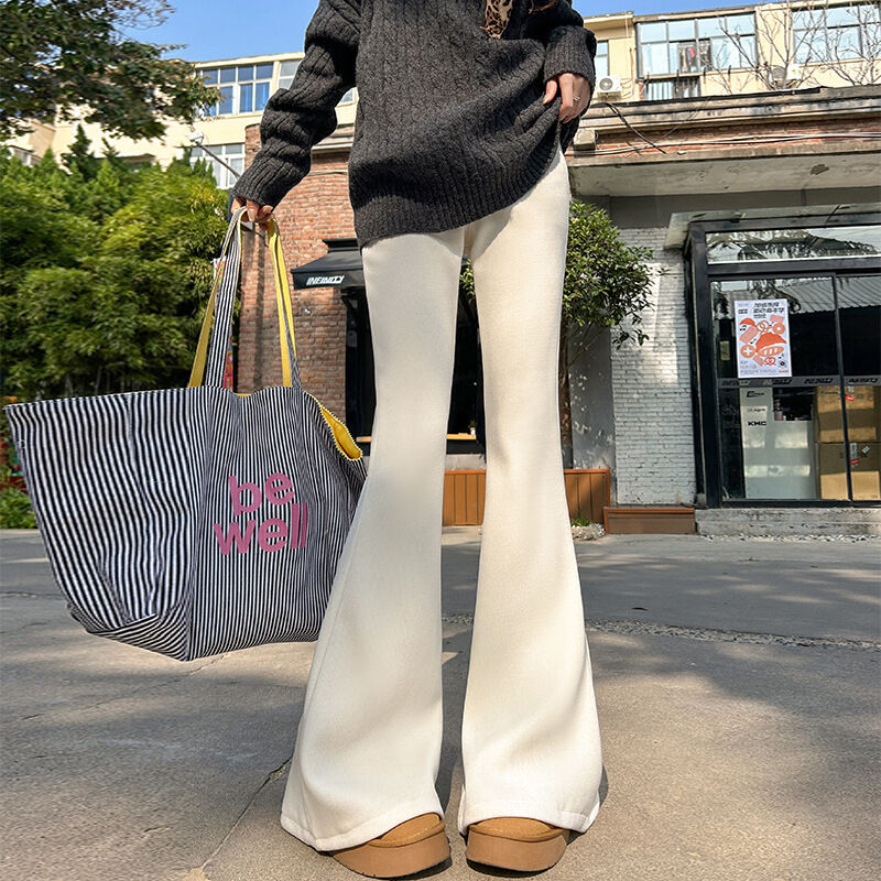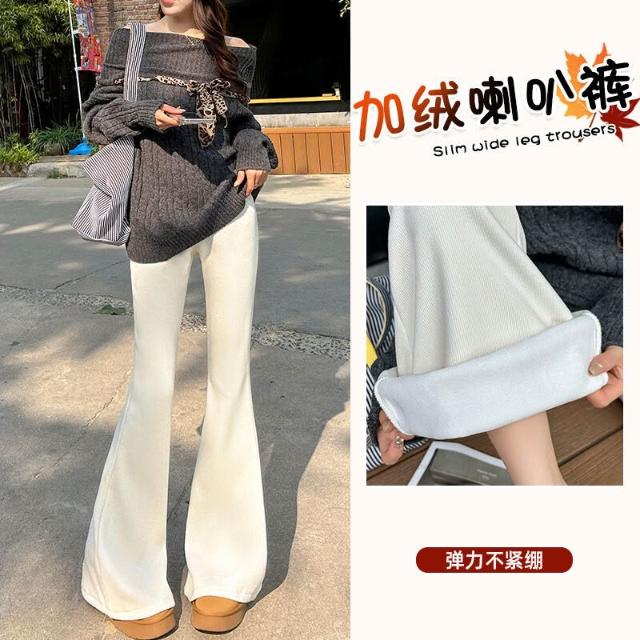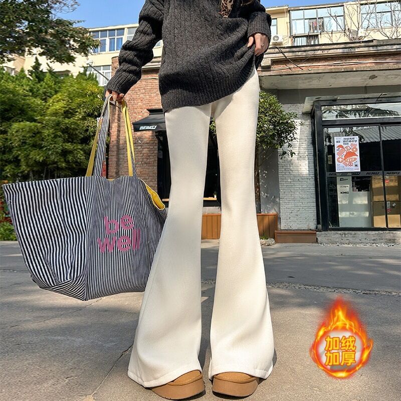 比比優 微喇叭白色雪尼爾加絨褲女冬季高腰垂感歐棉絨加厚拖地馬蹄糯米褲