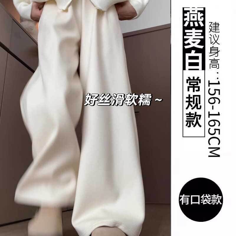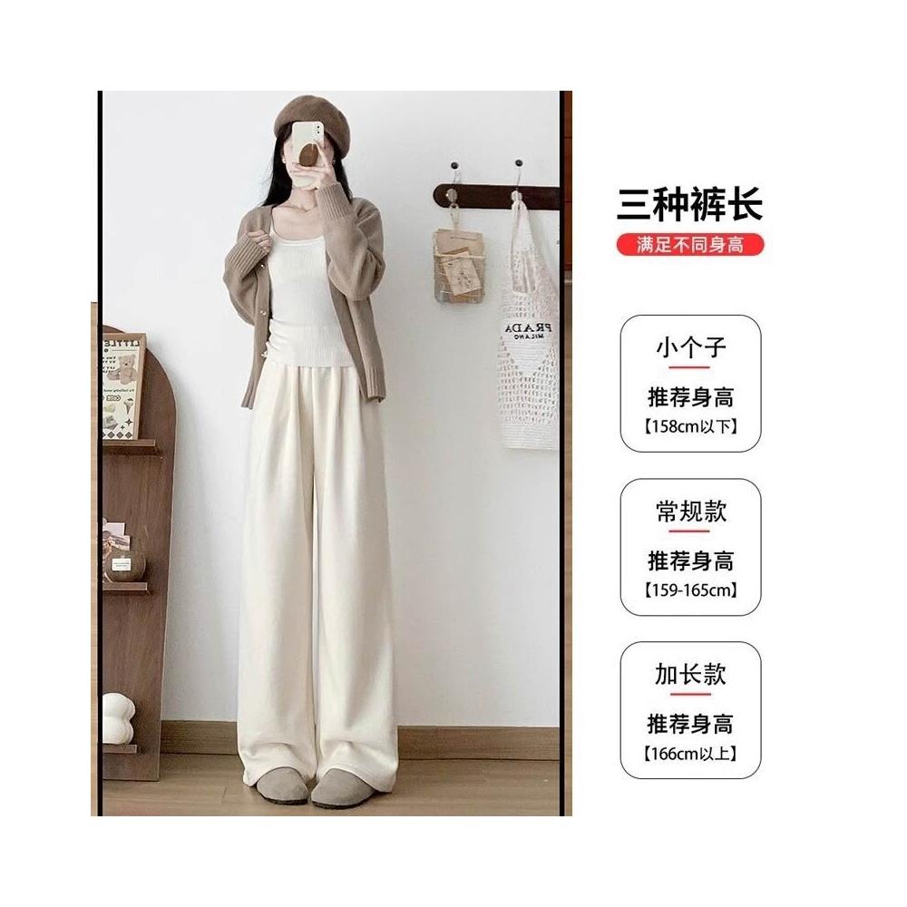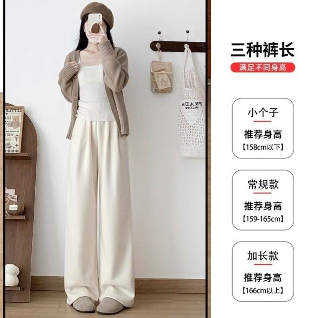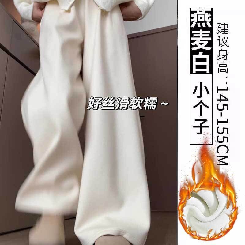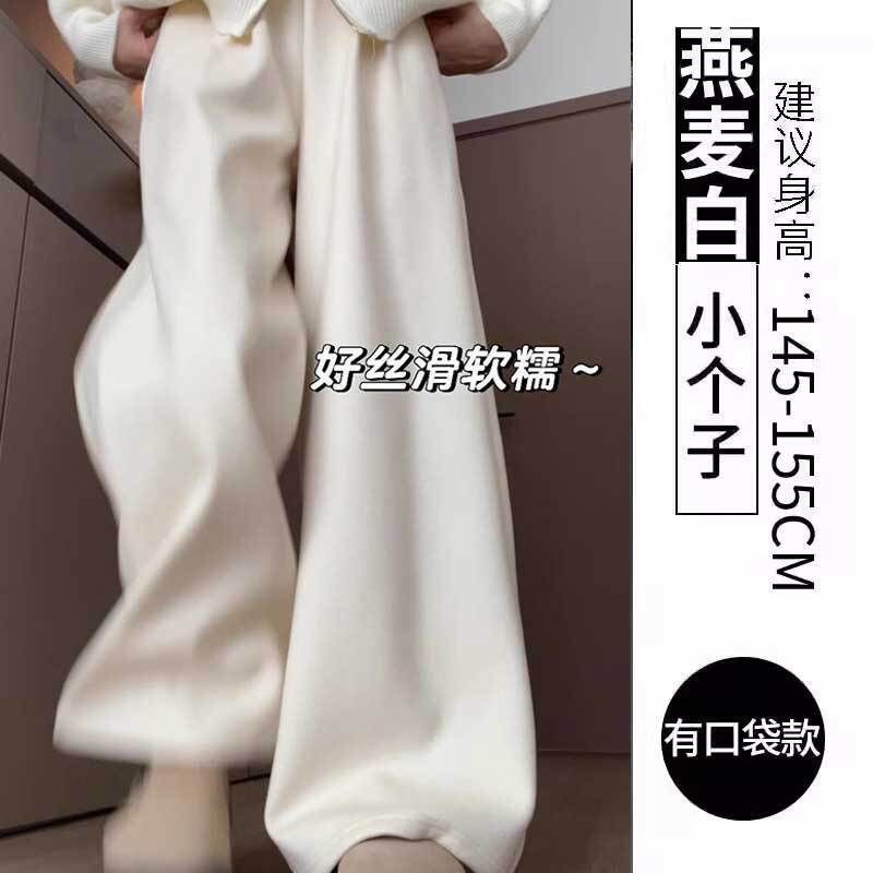 比比優 145小個子白色糯米褲女春秋冬150高腰垂感寬松直筒加絨羊絨闊腿褲