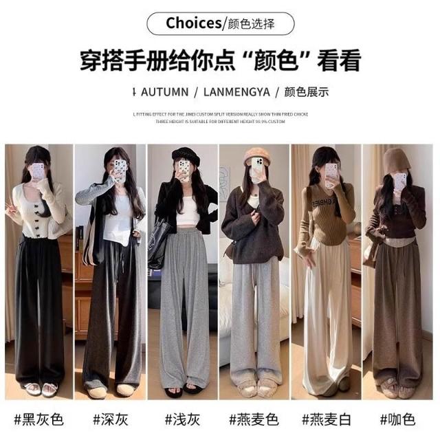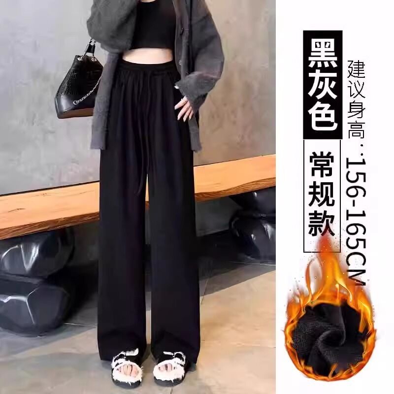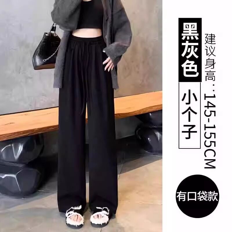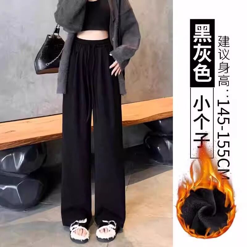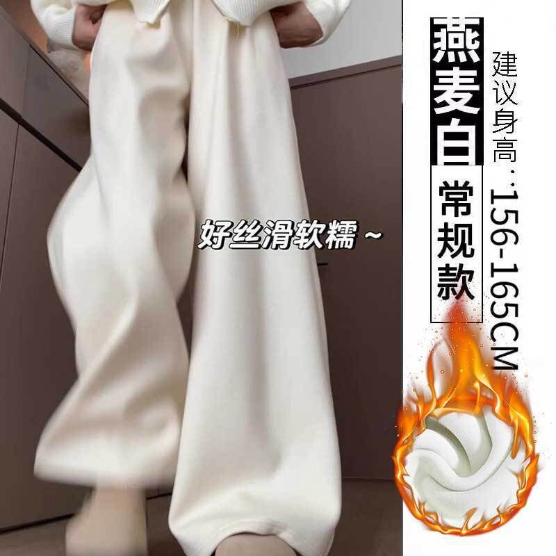 比比優 145小個子白色糯米褲女春秋冬150高腰垂感寬松直筒加絨羊絨闊腿褲