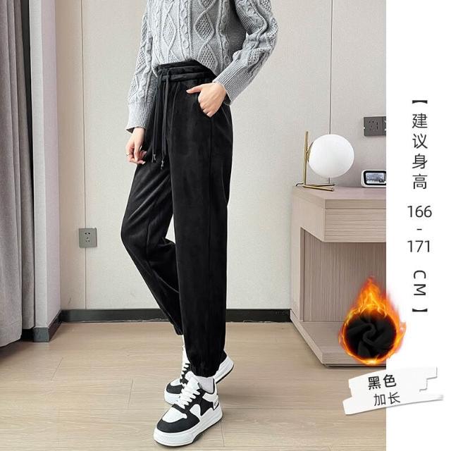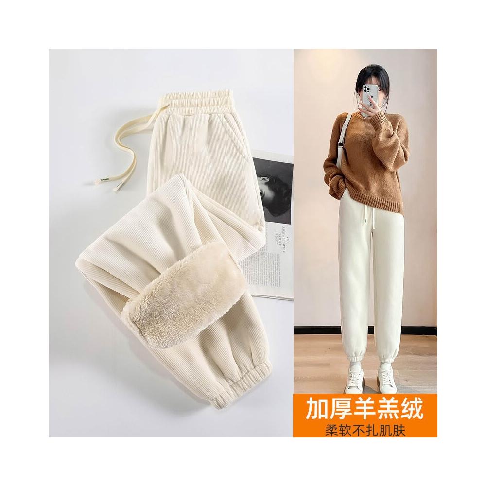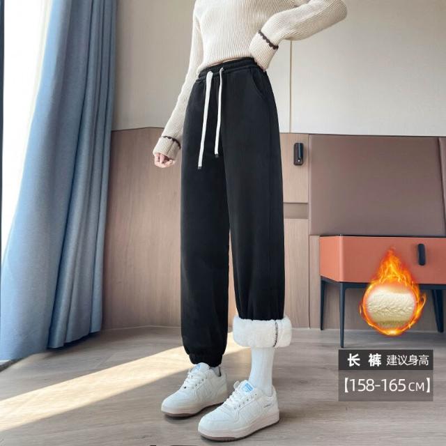 比比優 加絨束腳衛褲女2025年冬季大碼顯瘦仿羊羔絨保暖棉褲