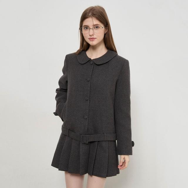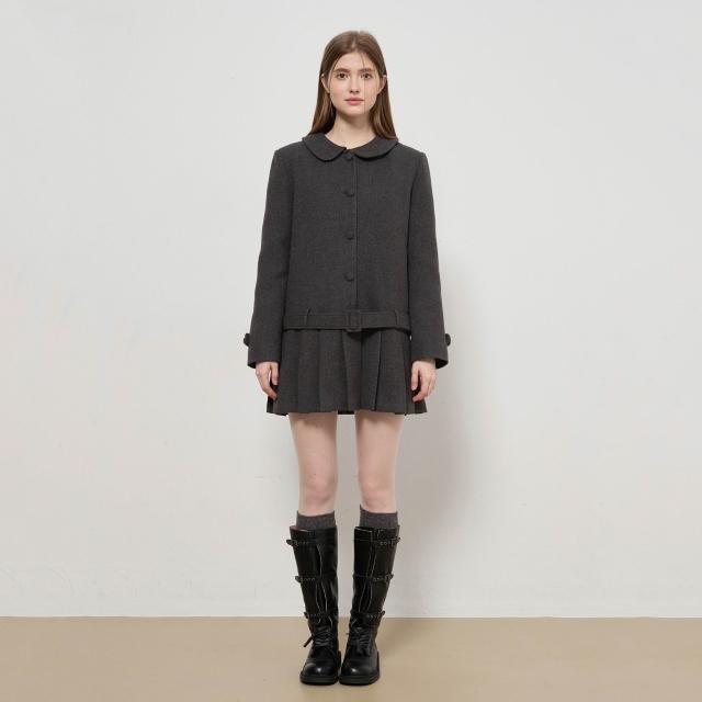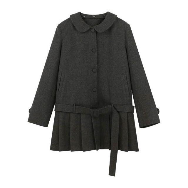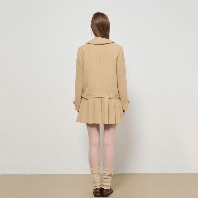 比比優 南韓藝高羽絨內膽翻領百褶裙羊毛大衣女毛呢外套2025秋冬新款潮流