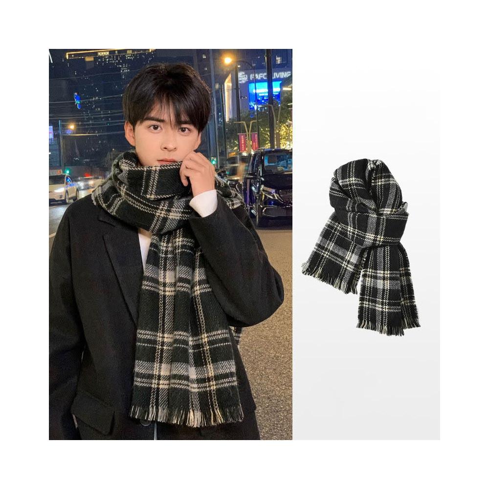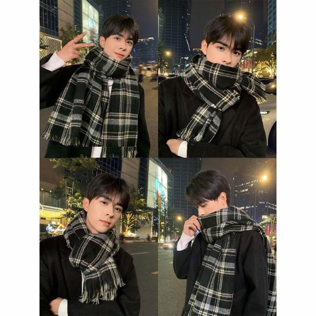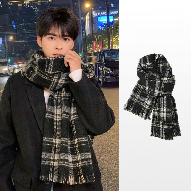 比比優 圍巾男冬季2025新款百搭韓版格子圍巾女情侶保暖圍脖送男友