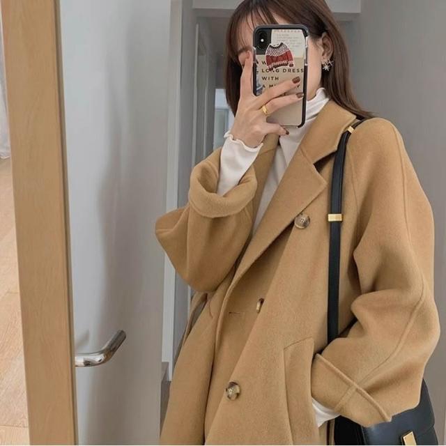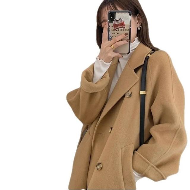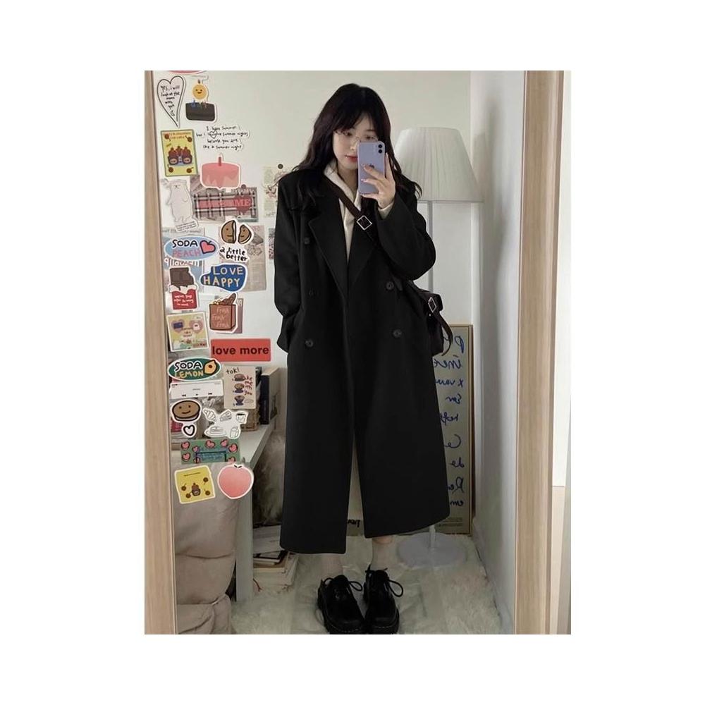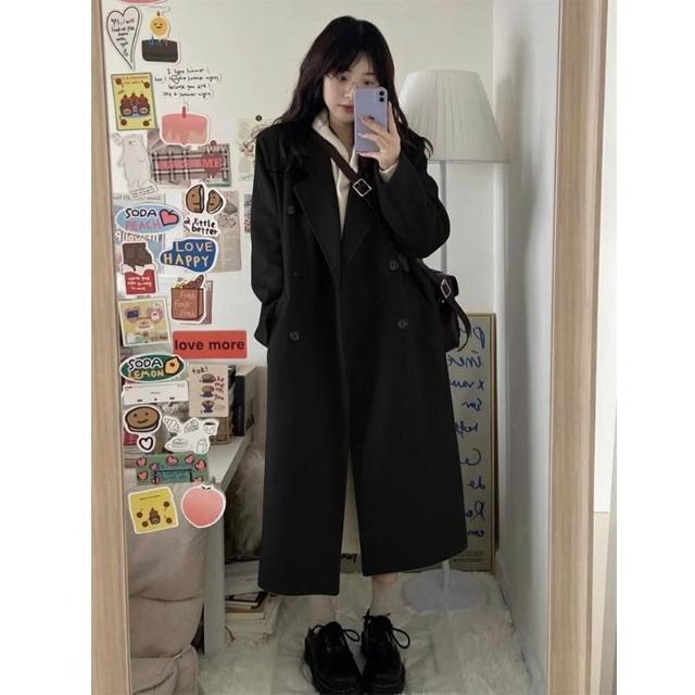 比比優 黑色毛呢外套女2025年秋冬季赫本風高級感中長款雙面毛呢大衣