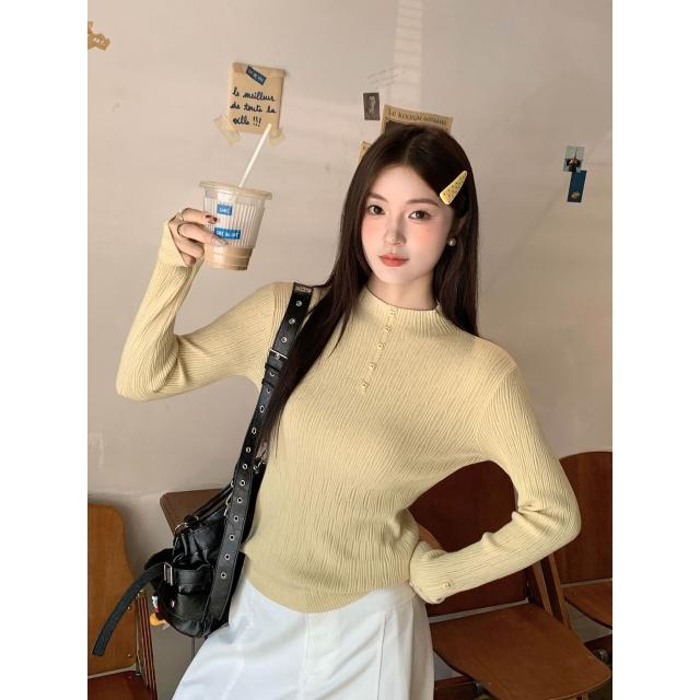 比比優 白色半高領打底衫女內搭2025新款秋冬韓系穿搭毛衣針織上衣