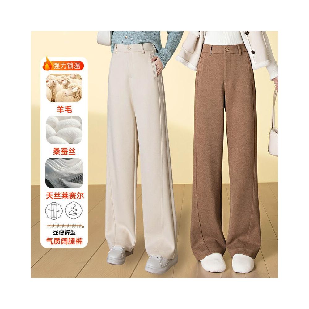 比比優 高端桑蠶絲羊毛呢休閑闊腿褲女2025秋冬季新款高腰顯瘦萊賽爾長褲