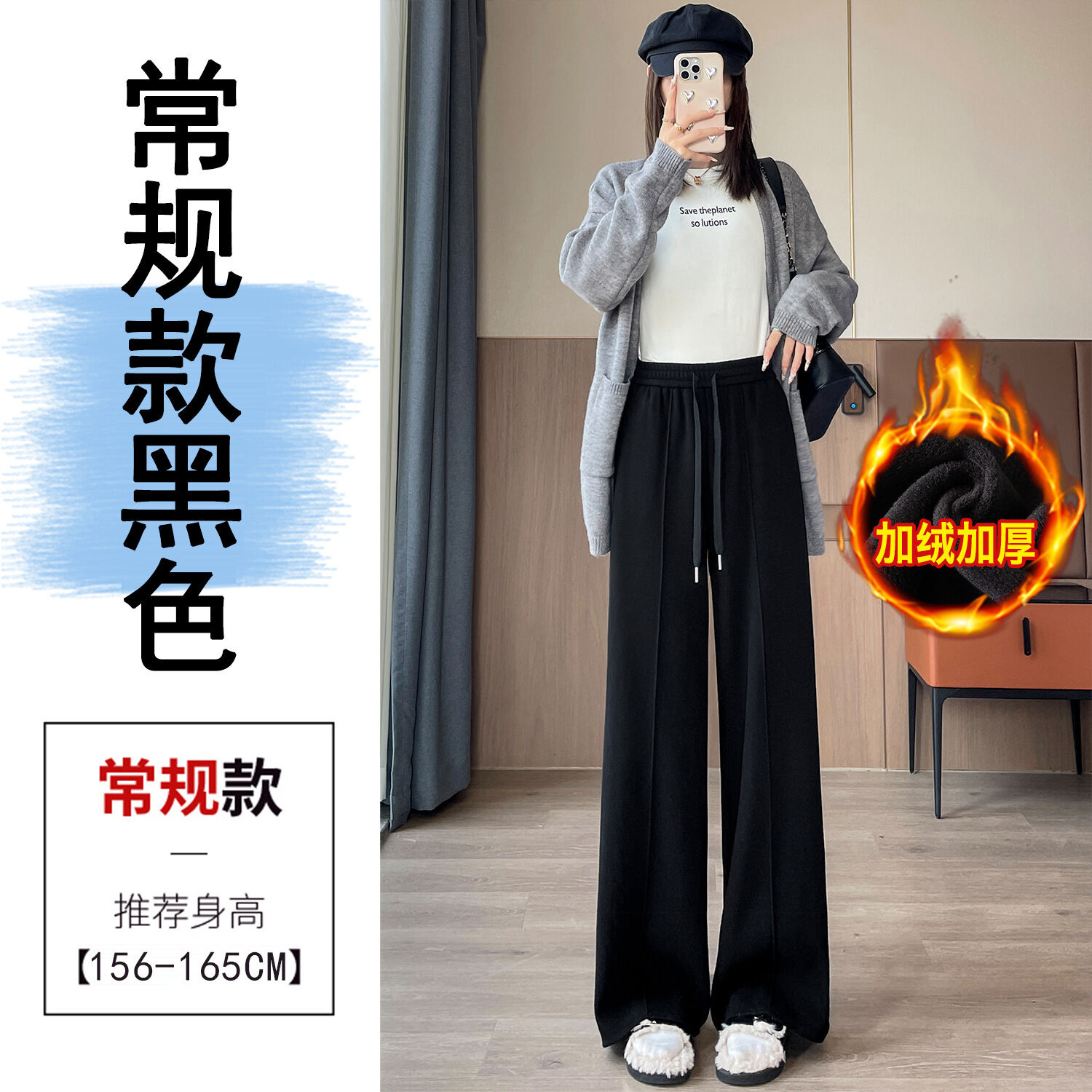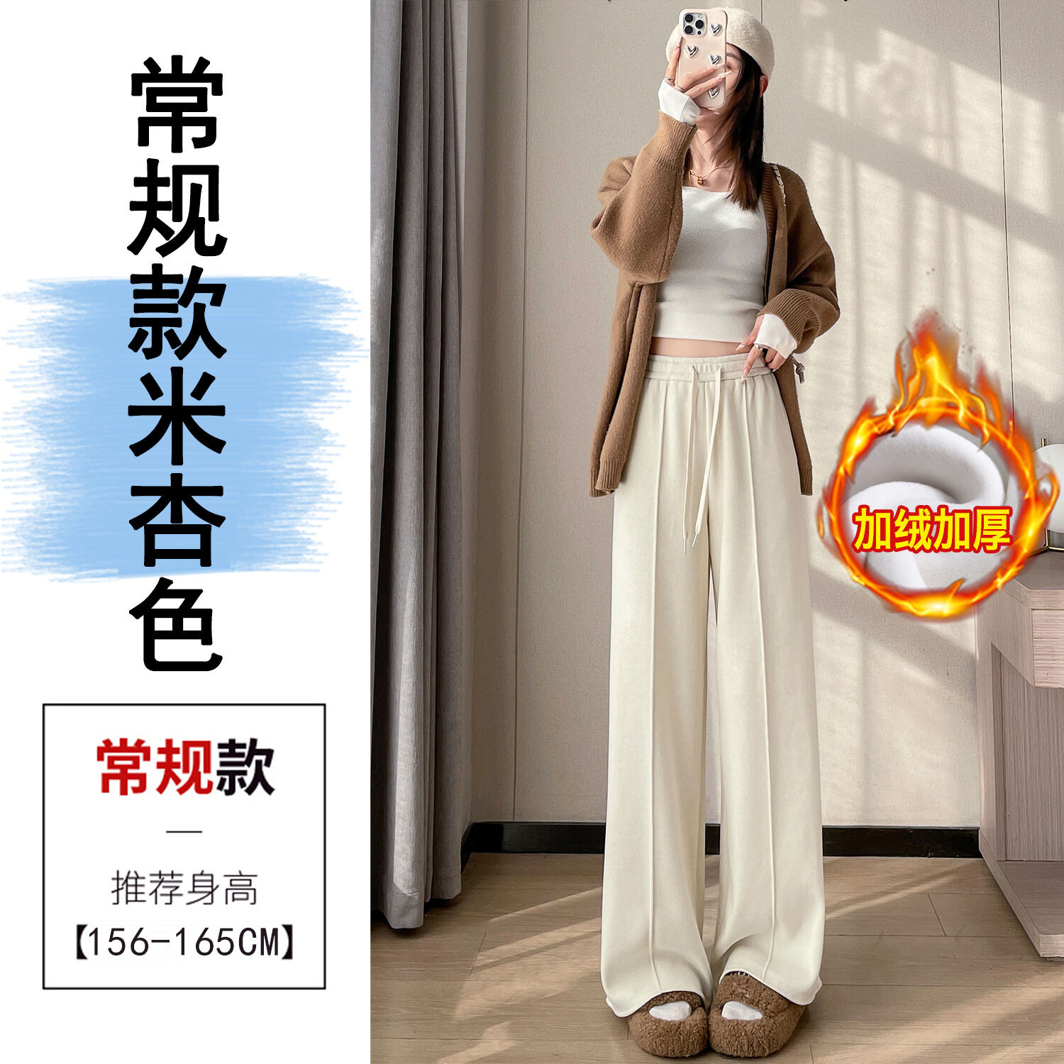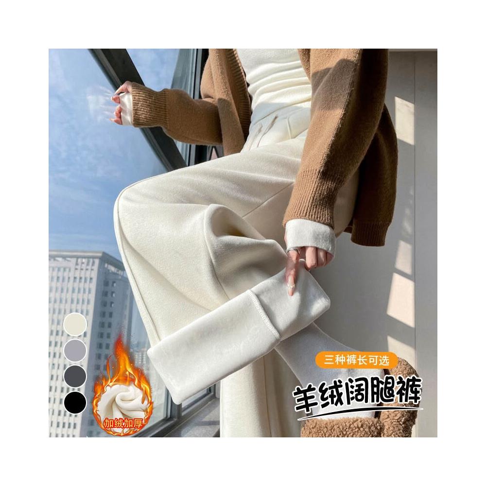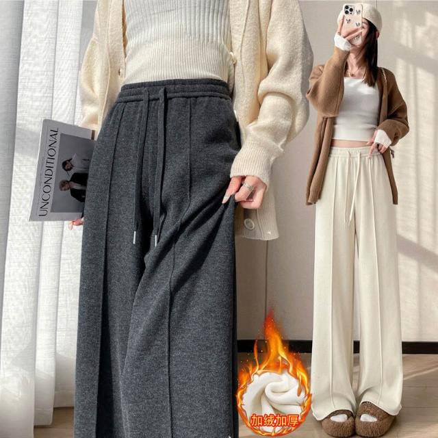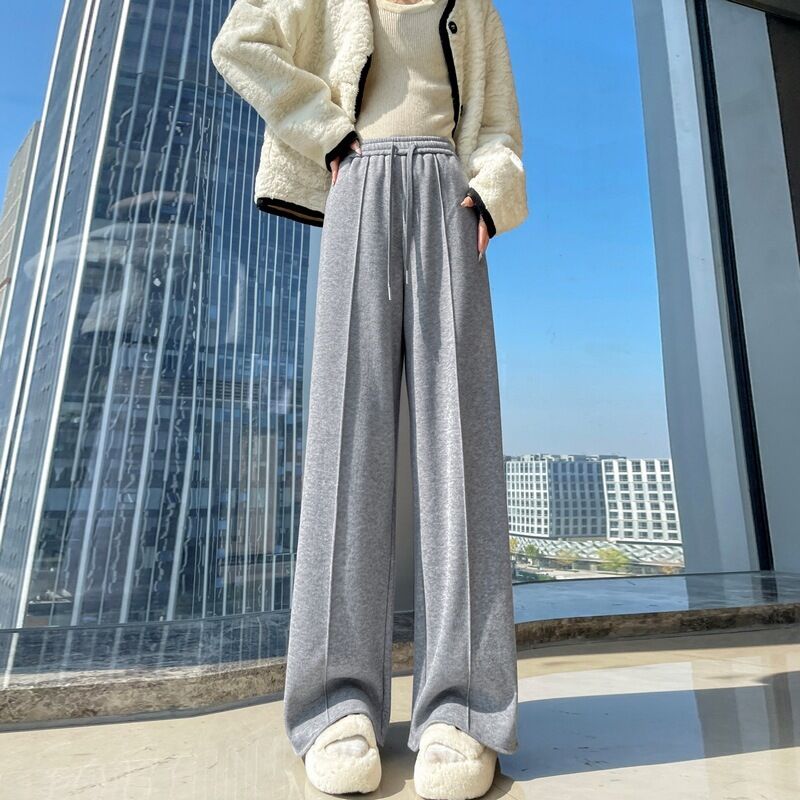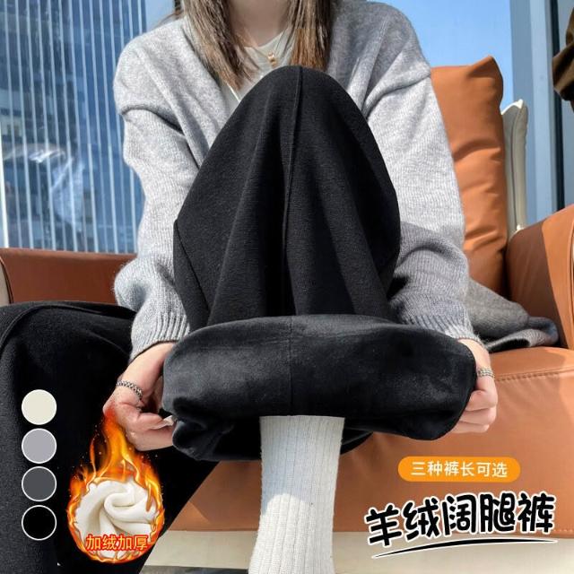 比比優 糯米羊絨褲女2025秋冬加絨加厚高腰直筒休閑拖地顯瘦窄版闊腿褲子