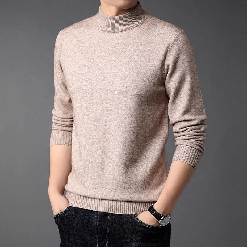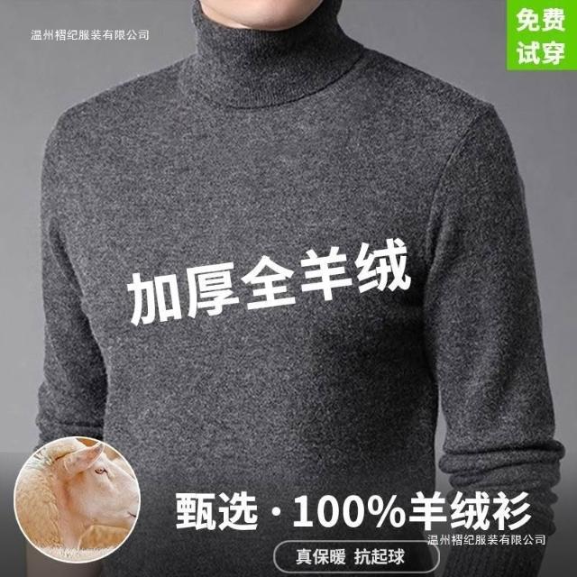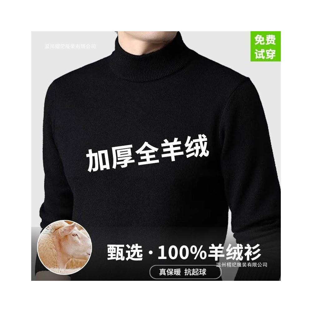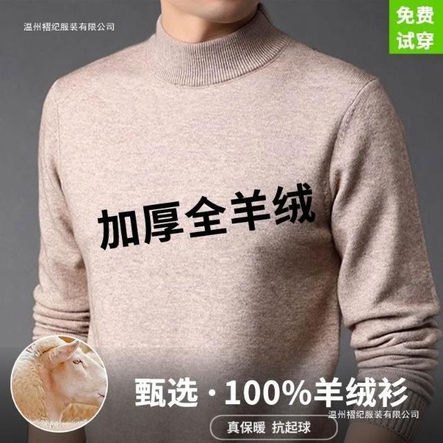 比比優 重磅加厚純山羊絨衫男冬款高檔羊毛針織打底衫半高領毛衣防風