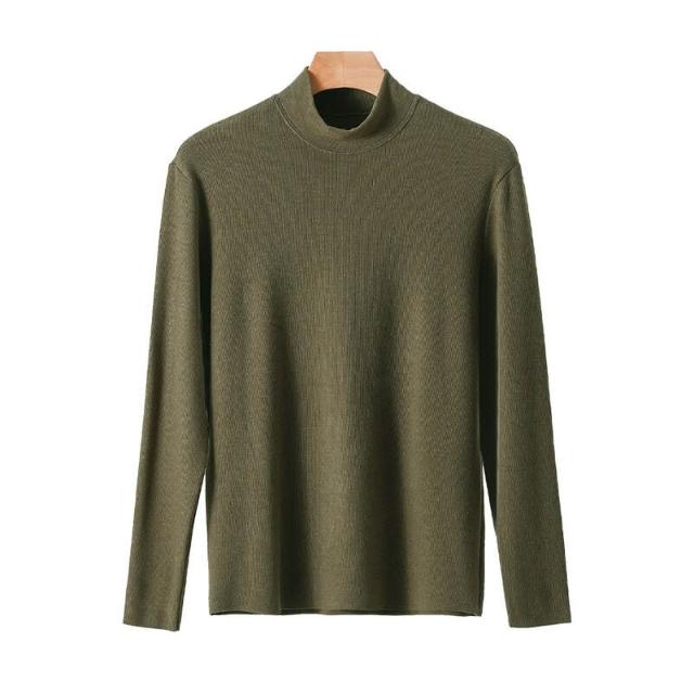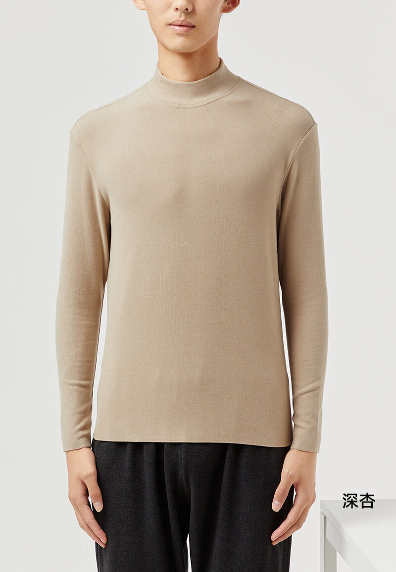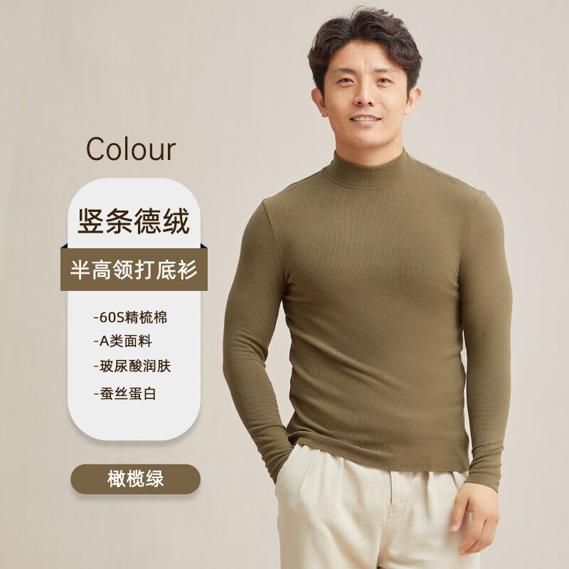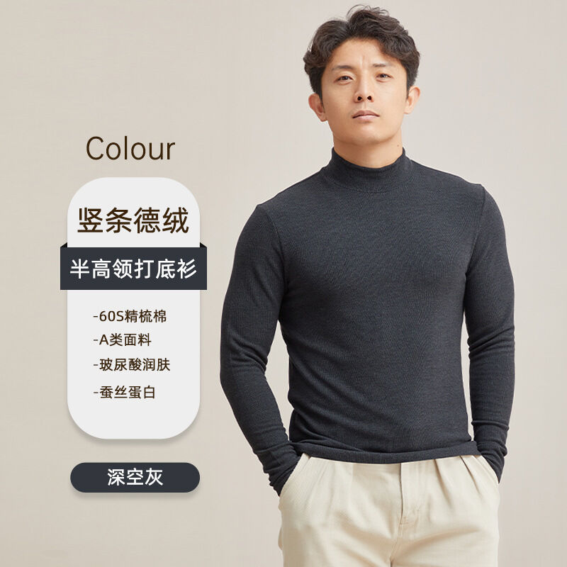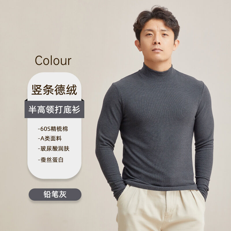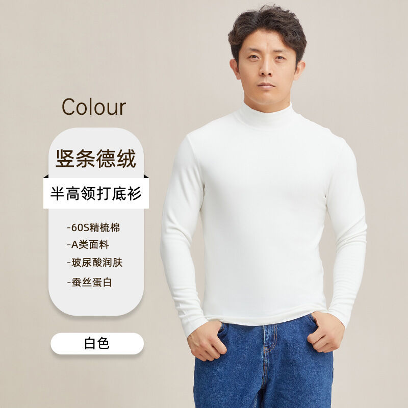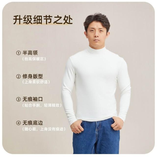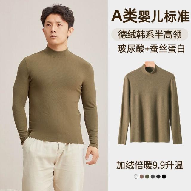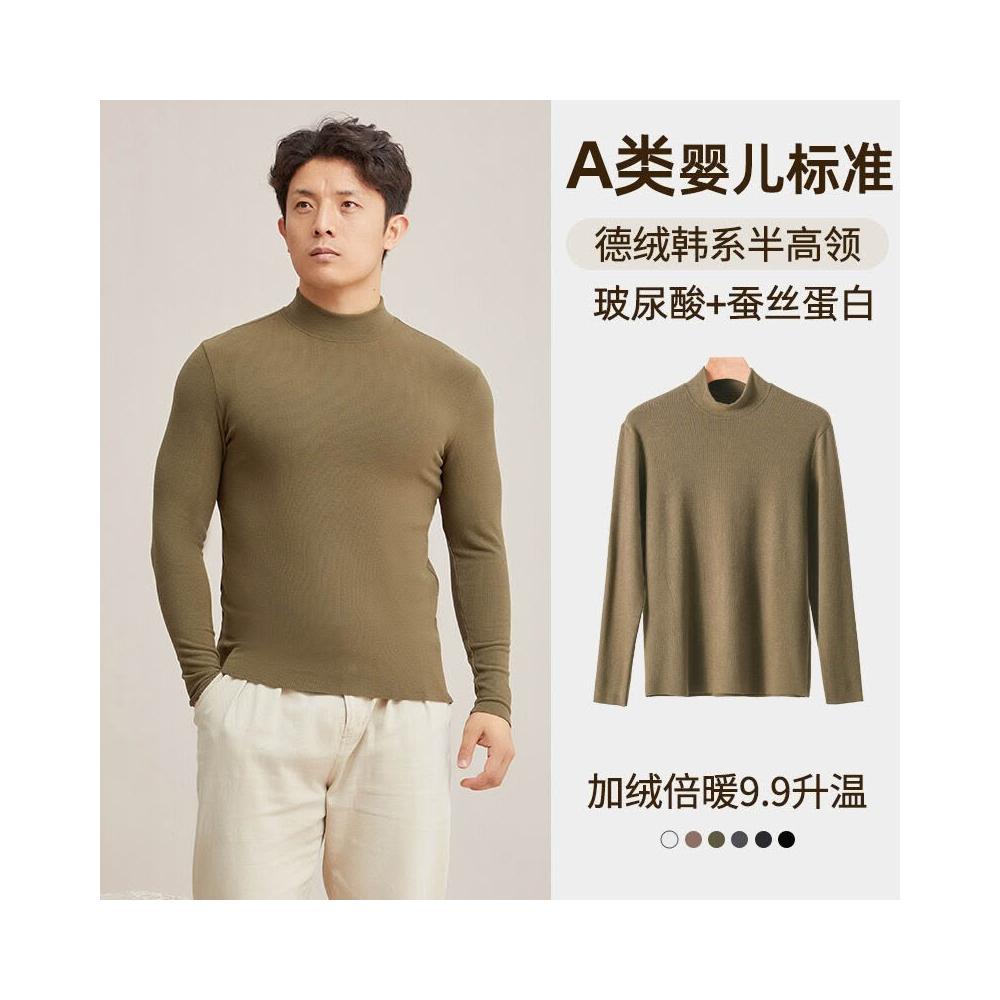 比比優 德絨半高領保暖打底衫男冬季a類加絨加厚發熱休閑內搭長袖上衣男