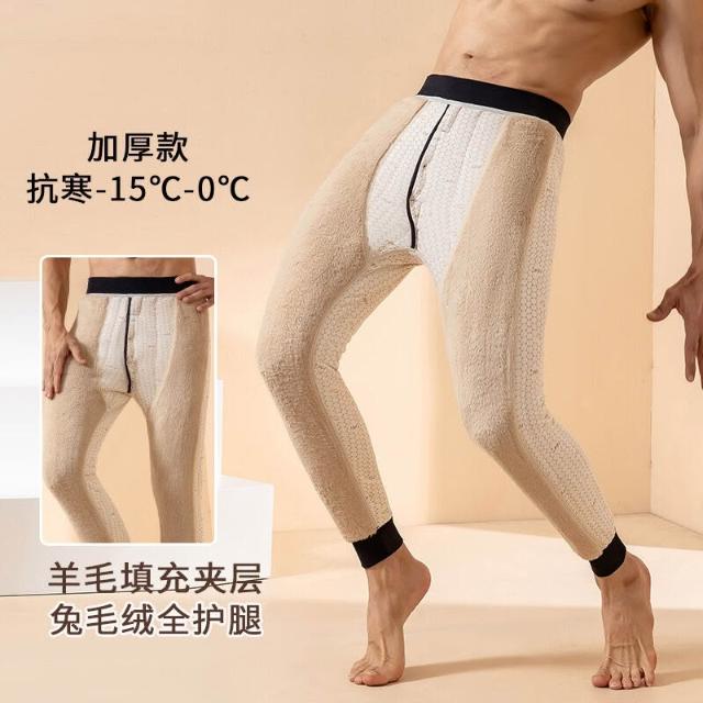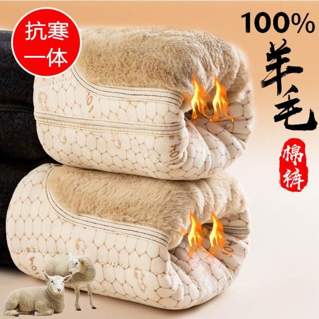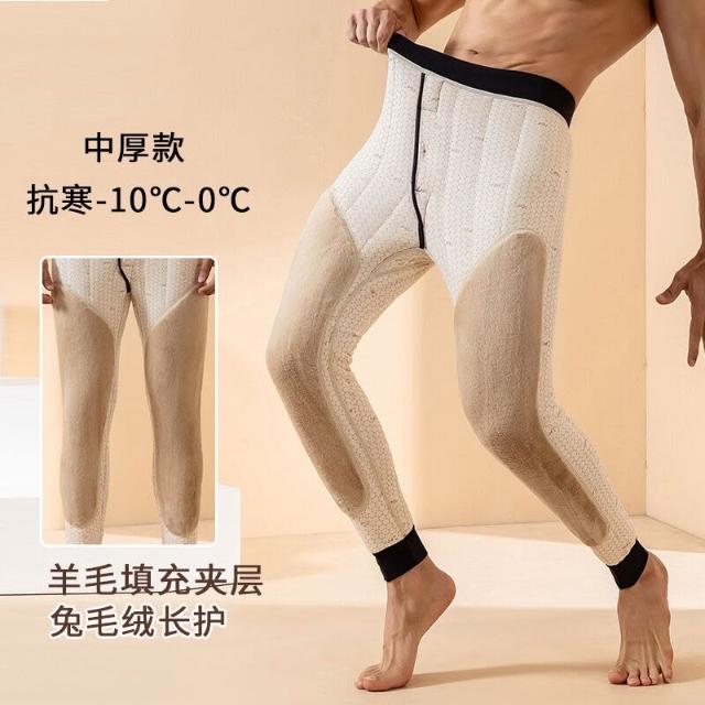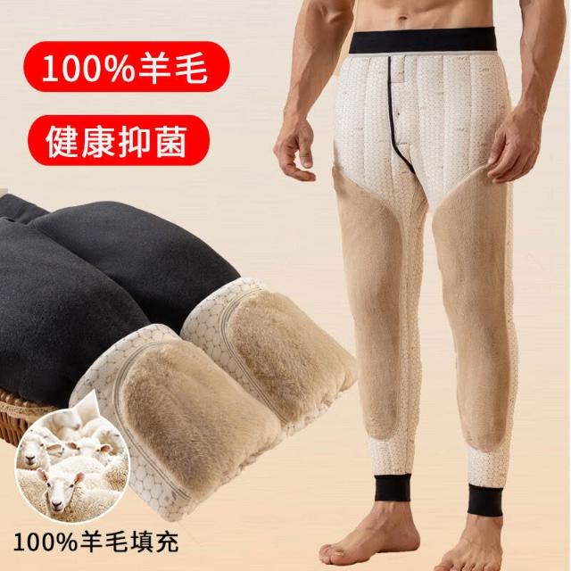 比比優 羊毛男士保暖褲加絨加厚棉褲加長護膝冬季高腰護腰一體內穿打底褲