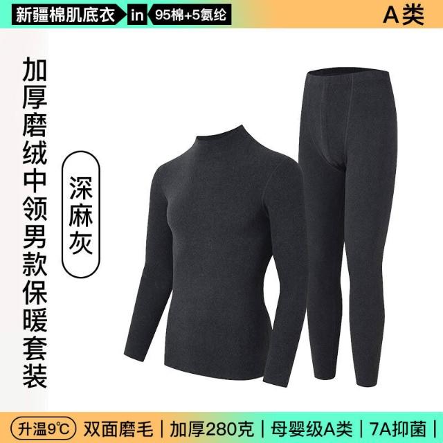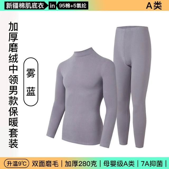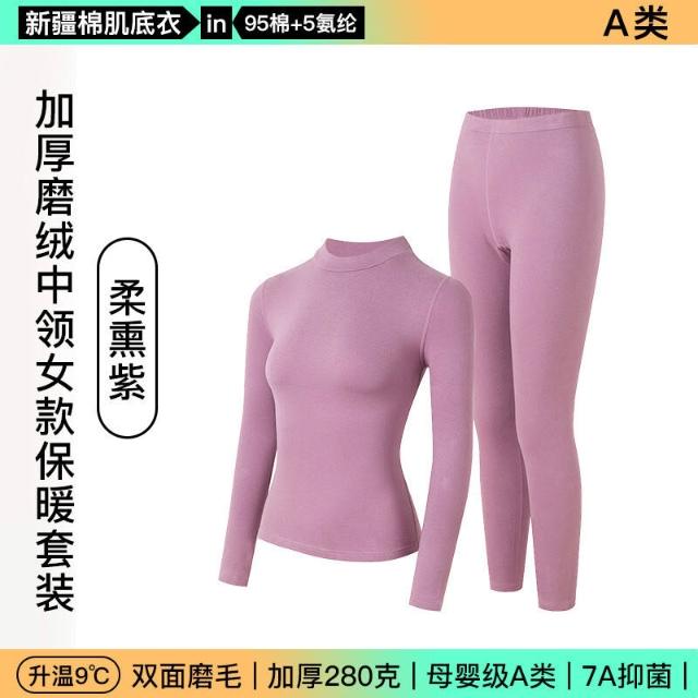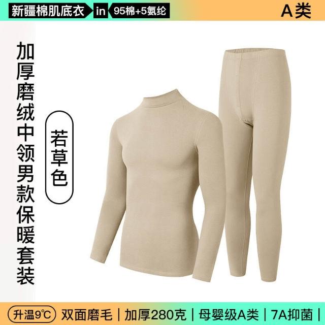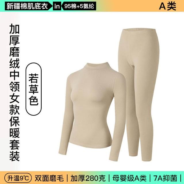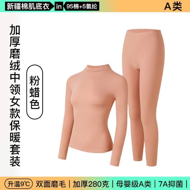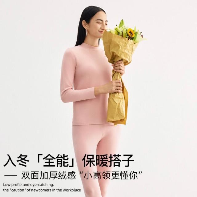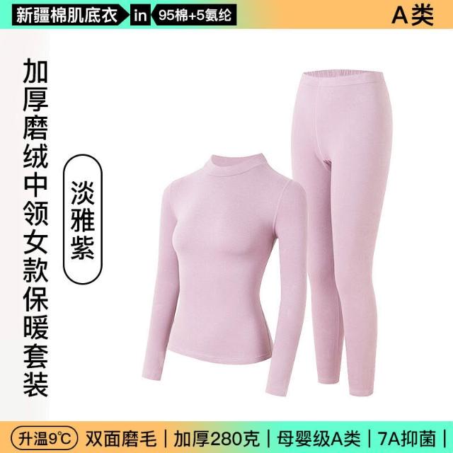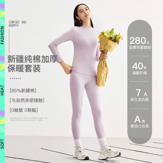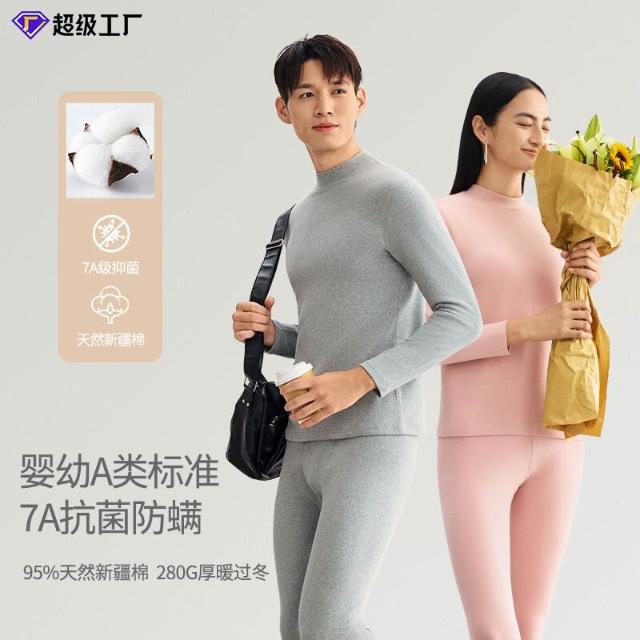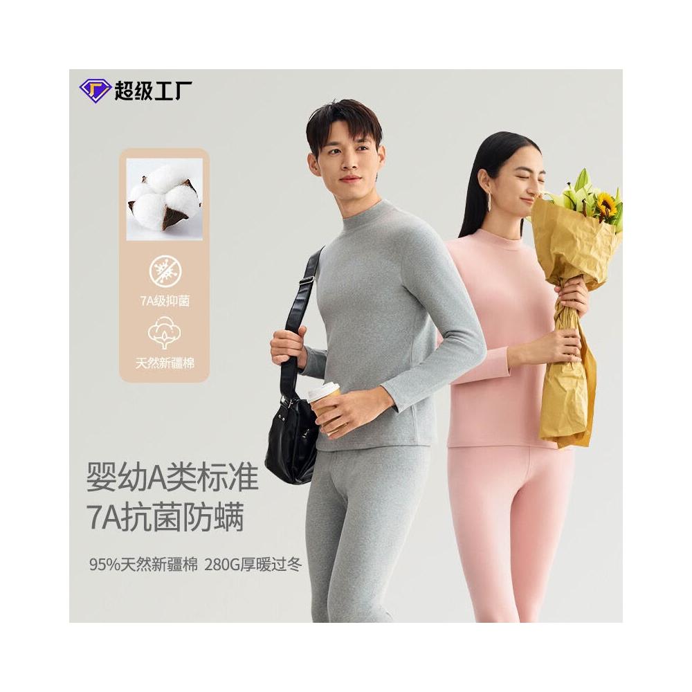 比比優 秋冬新款加厚 類透氣中領男女士款保暖內衣套裝280克純棉秋衣秋褲