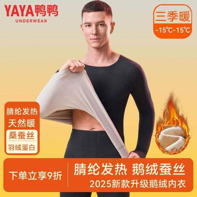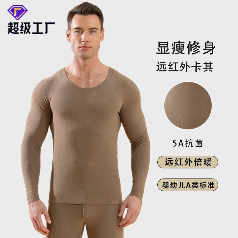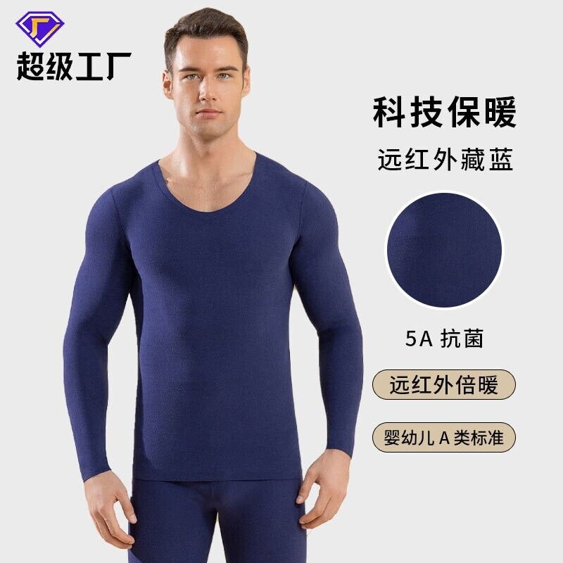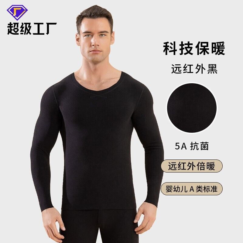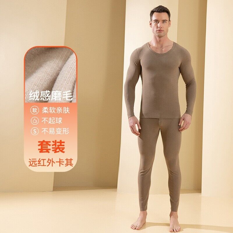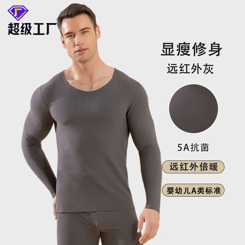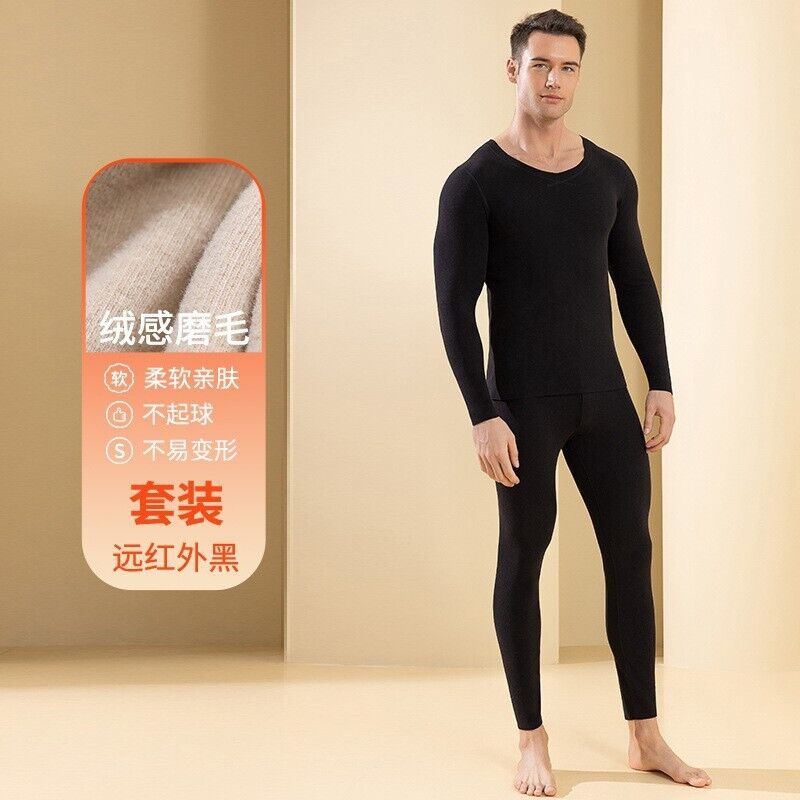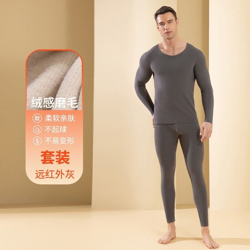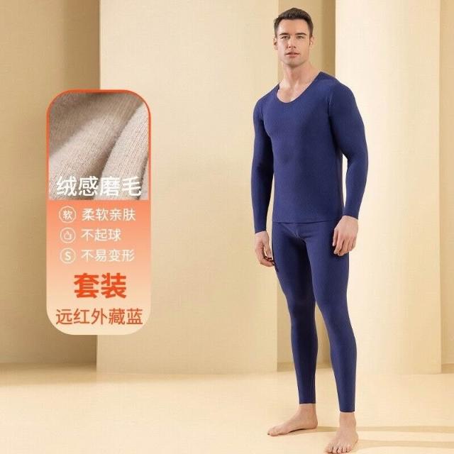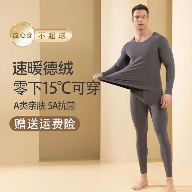 比比優 發熱抗菌男士德絨保暖內衣圓領套裝打底秋冬新款加絨加厚秋衣秋褲