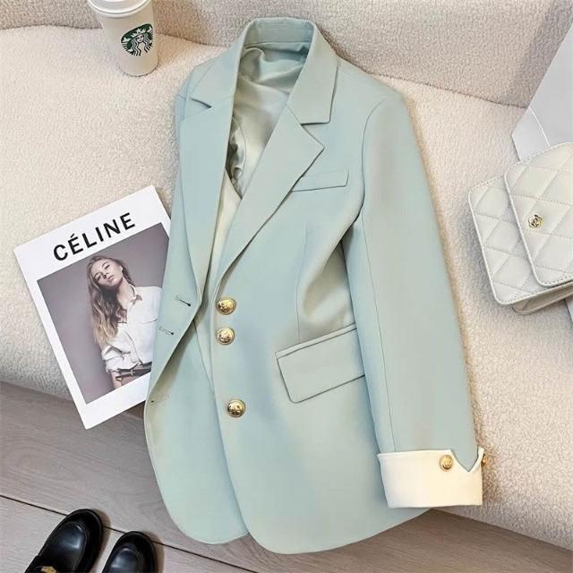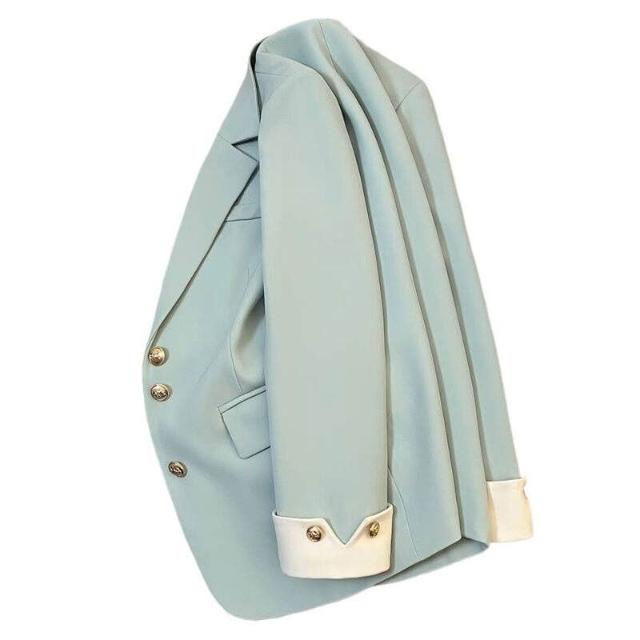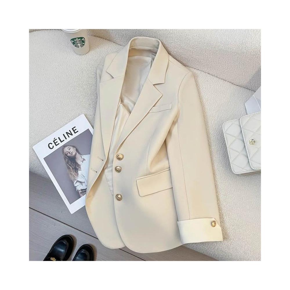 比比優精選 米色西服外套2025新款韓版設計春秋時尚氣質通勤拼接西裝女