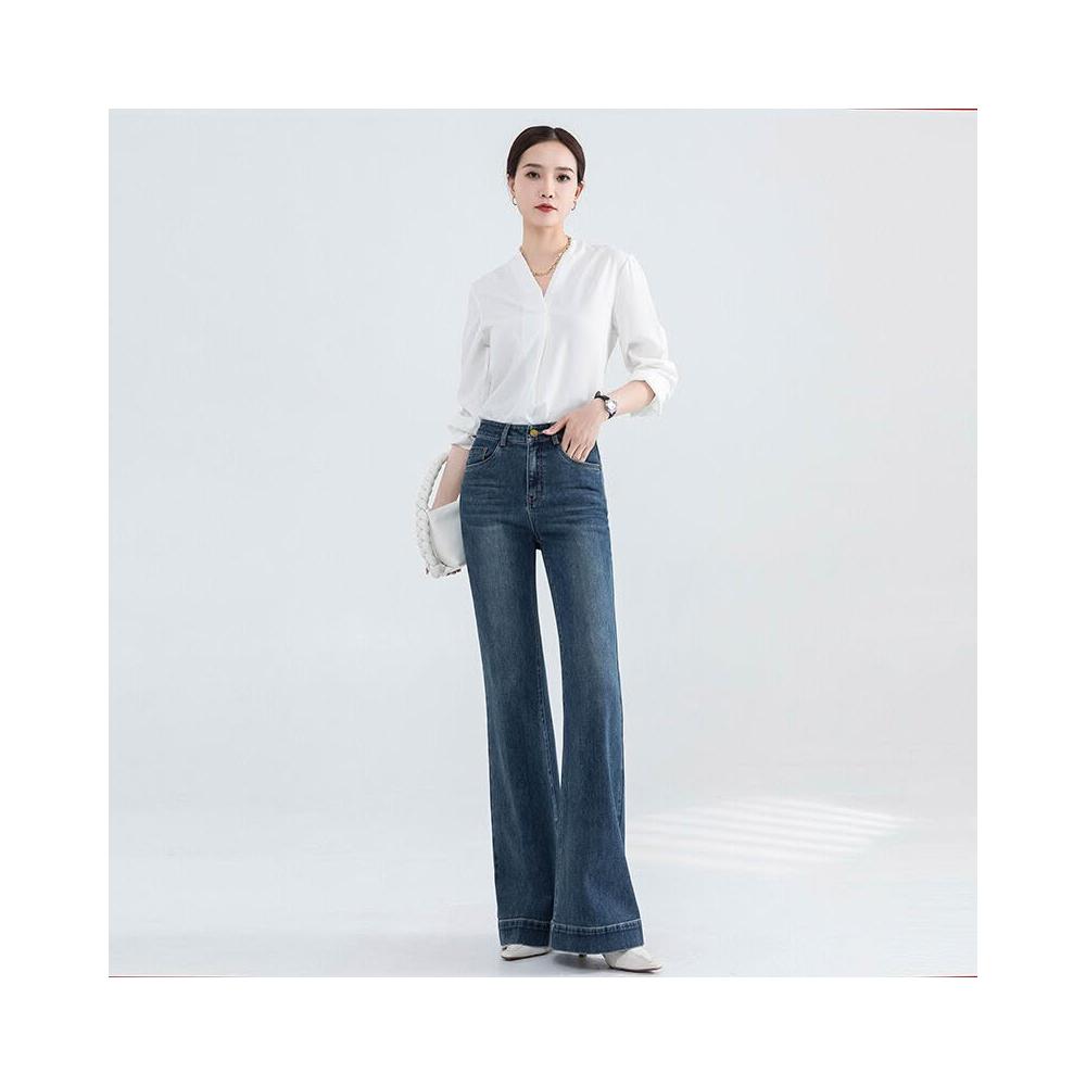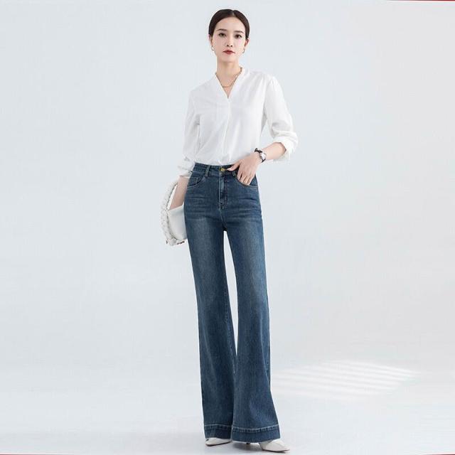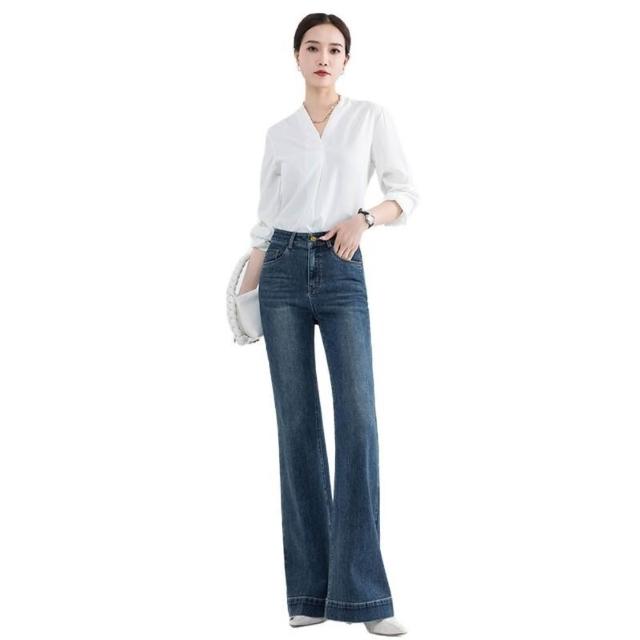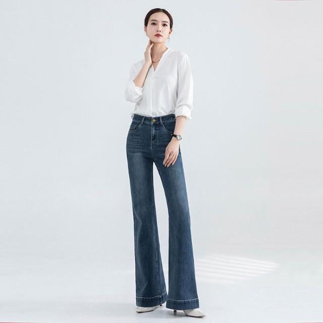 比比優精選 牛仔褲女春夏季新款直筒高腰顯瘦小個子百搭微喇闊腿長褲