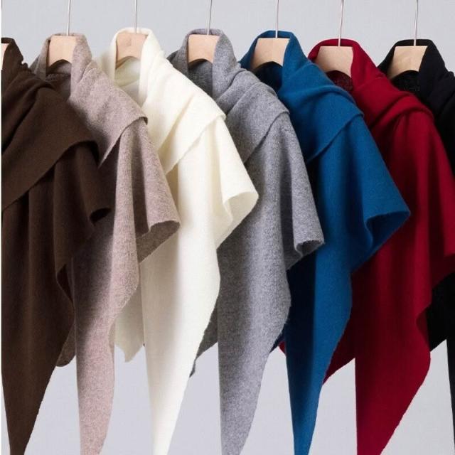 比比優精選 100羊毛披肩三角巾女針織領巾護頸披肩秋冬新披肩外搭圍巾一件批