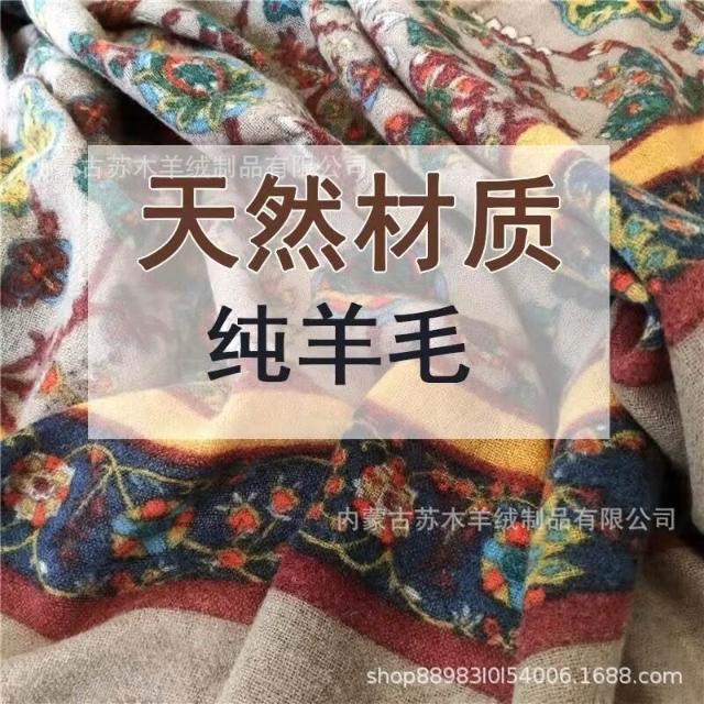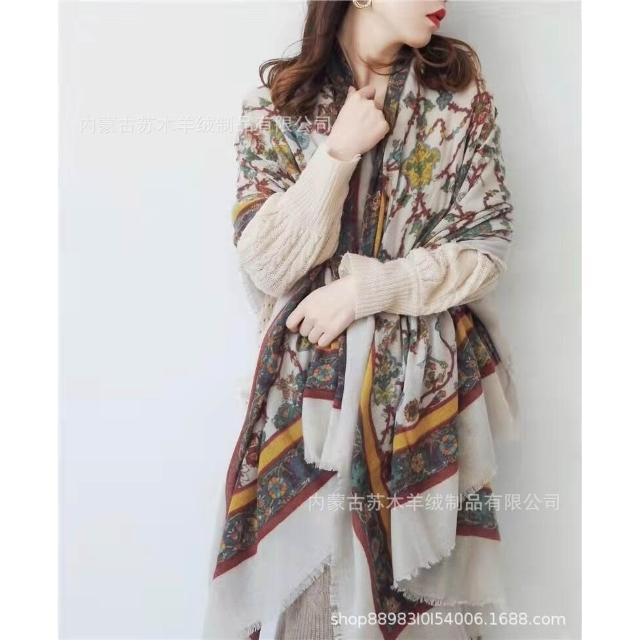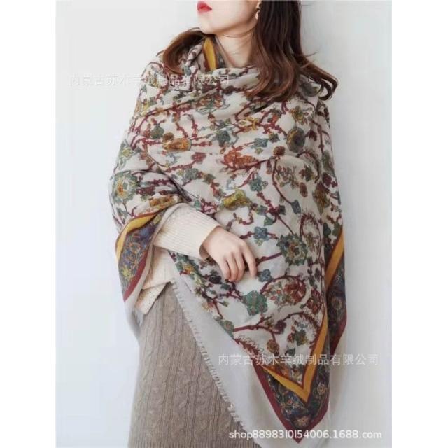 比比優精選 內蒙古羊絨圍巾菩提梵花水煮羊毛圍巾超大披肩