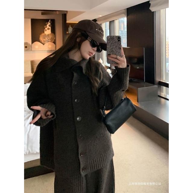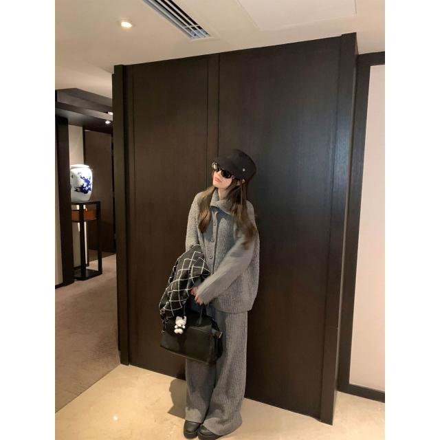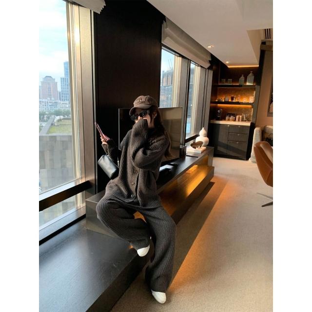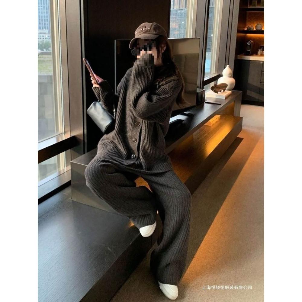 比比優精選 松弛感秋冬穿搭一整套新款軟糯針織衫紐扣毛衣休閑褲加厚兩件套裝