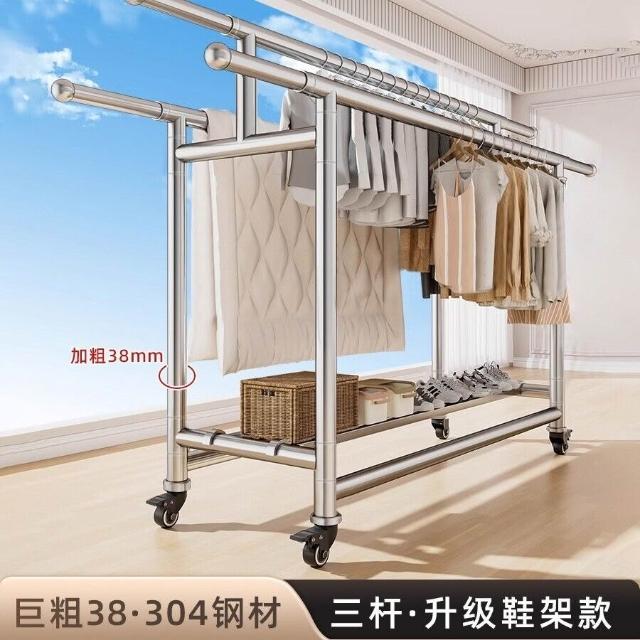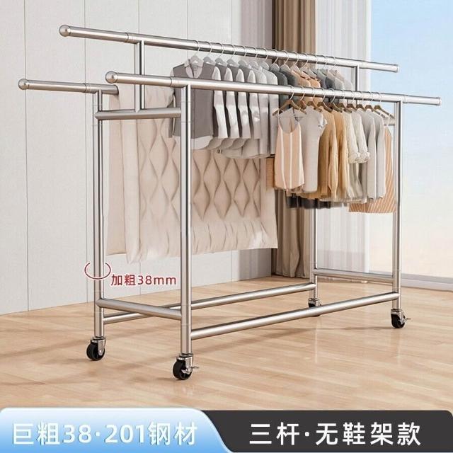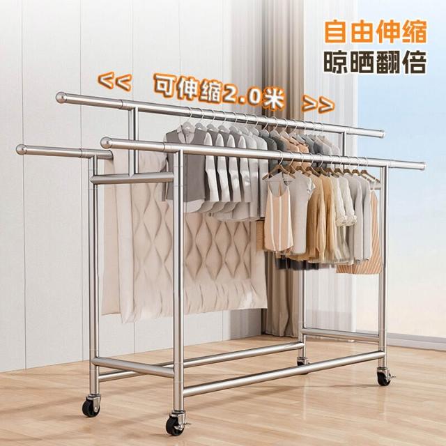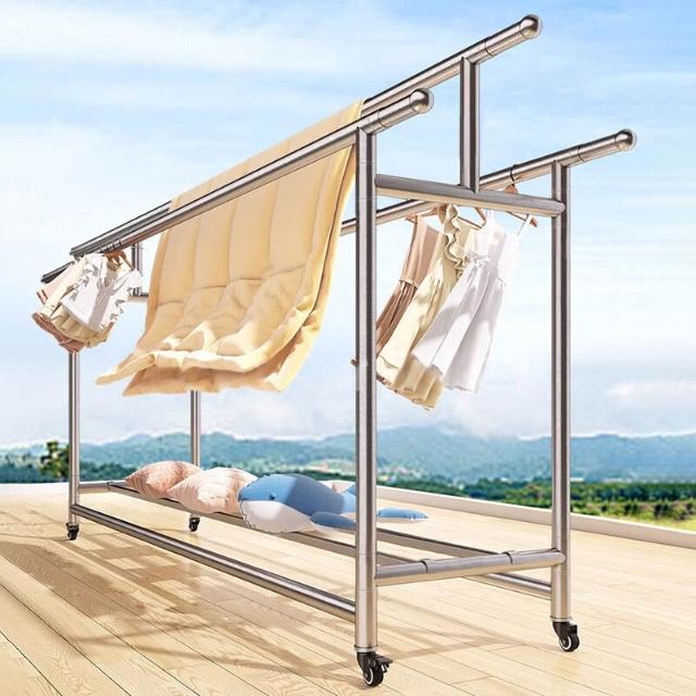 比比優 304不銹鋼落地晾衣架家用室內外陽臺折疊移動伸縮桿曬衣服涼衣架 晾衣架