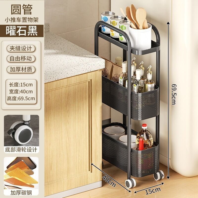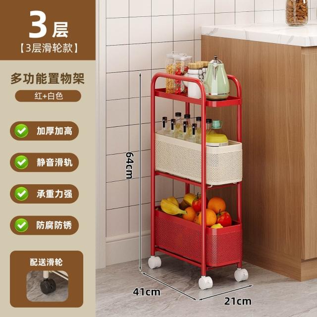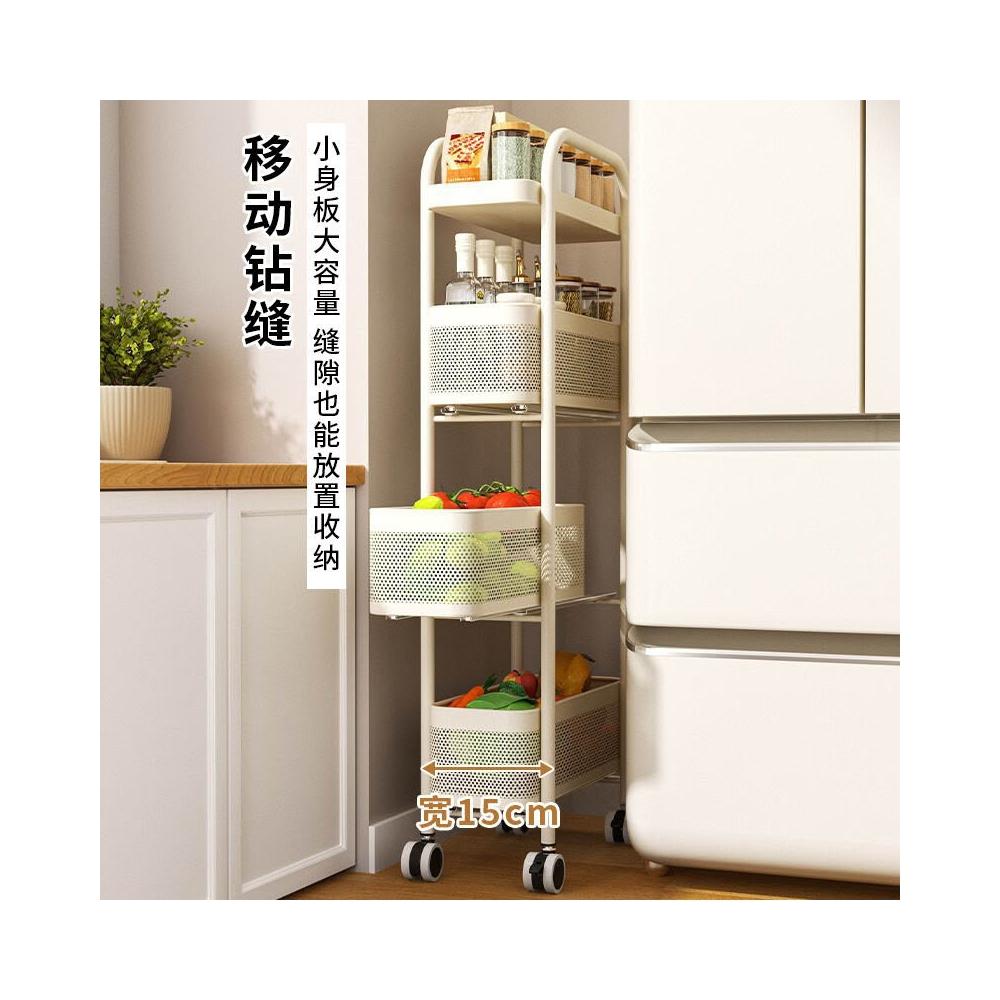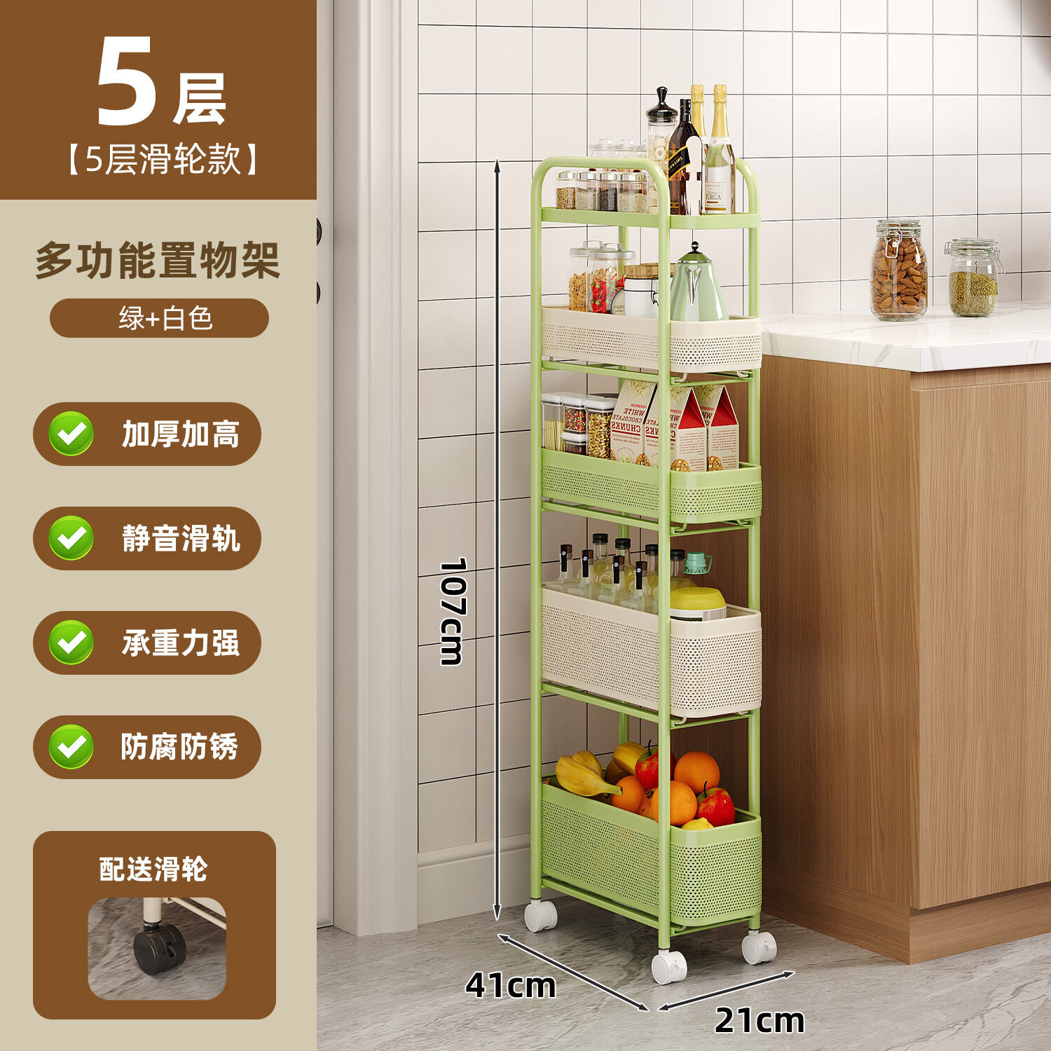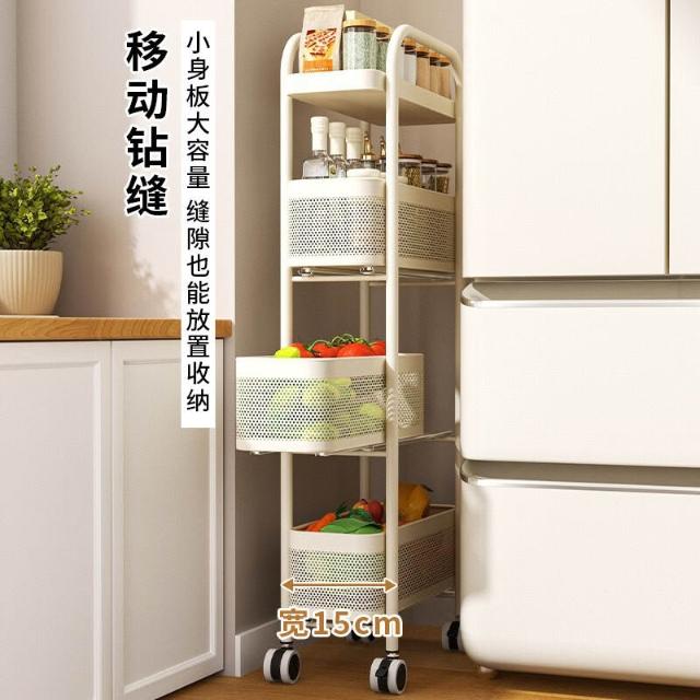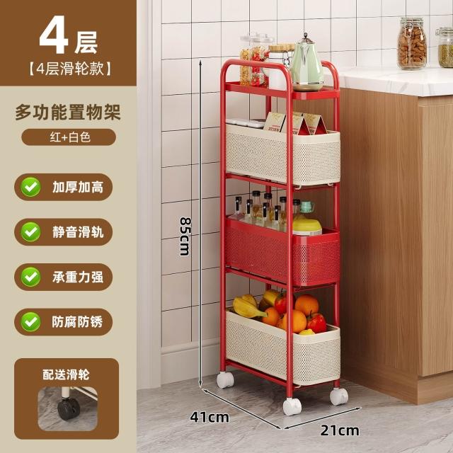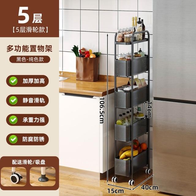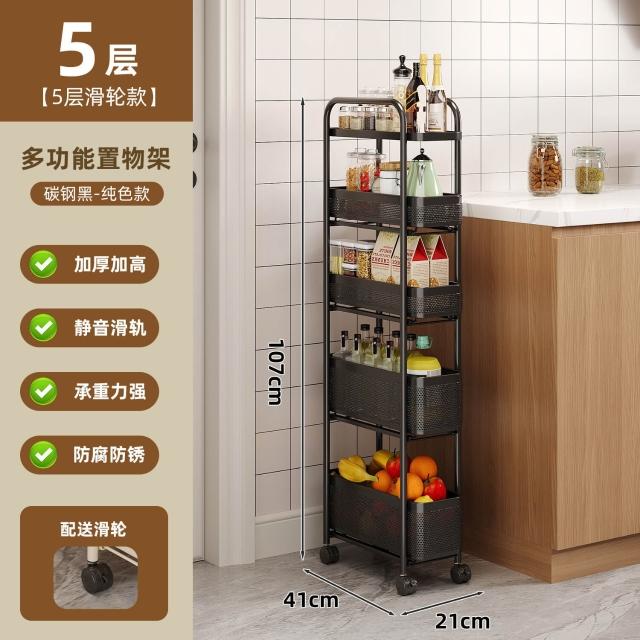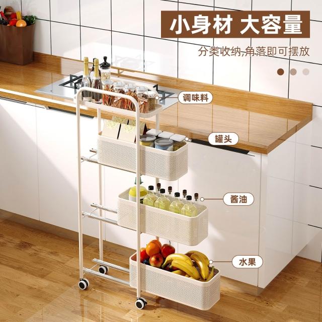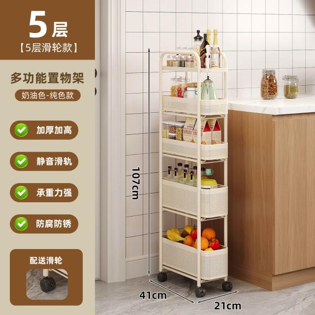 比比優 廚房夾縫置物架窄款可抽拉移動小推車多層落地浴室衛生間收納架子