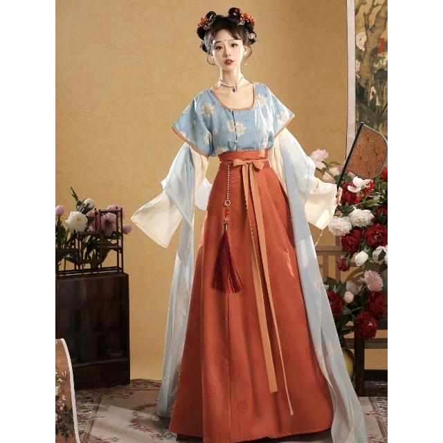 比比優 夢華唐唐褙子圓領衫女春夏唐製八破齊腰裙套裝 漢服