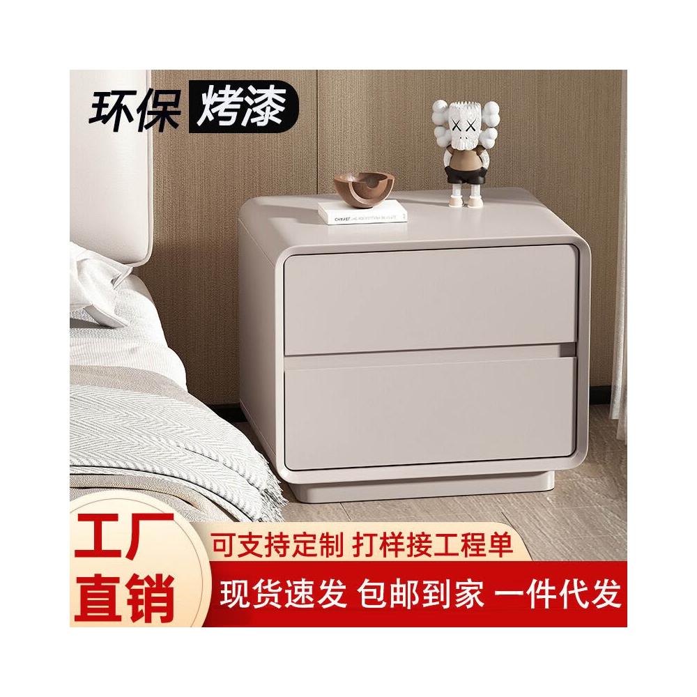 比比優 奶油風實木烤漆床頭櫃現代簡約輕奢高級感家用臥室小型床頭收納櫃 床頭 便捷