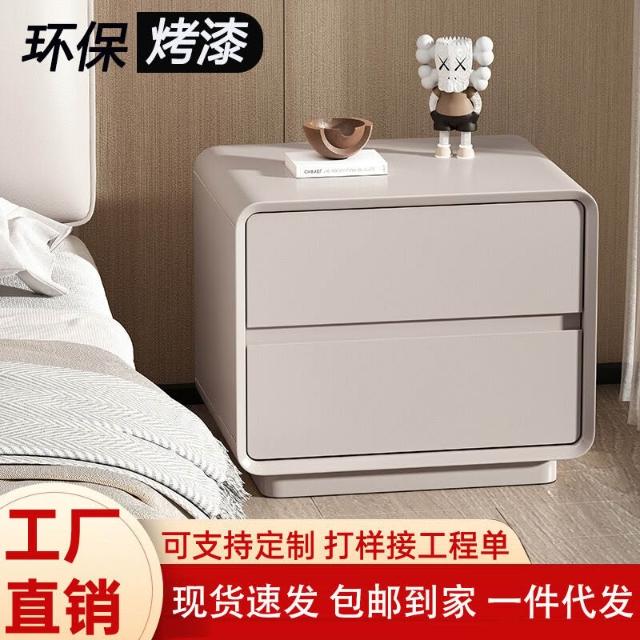 比比優 奶油風實木烤漆床頭櫃現代簡約輕奢高級感家用臥室小型床頭收納櫃 床頭 便捷