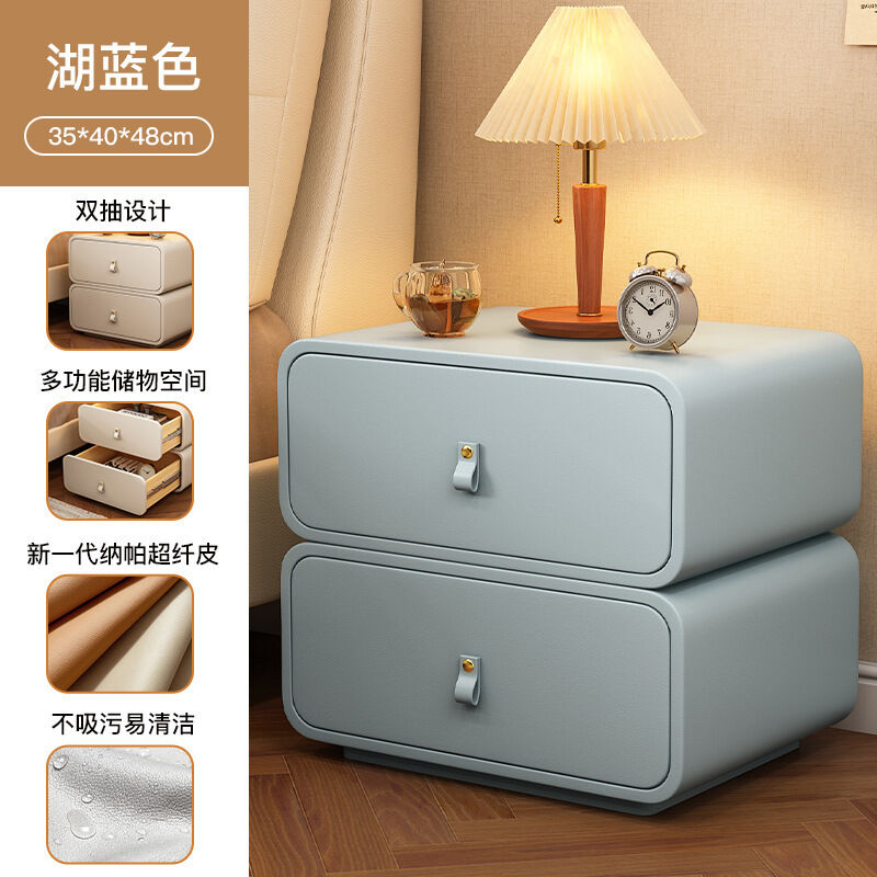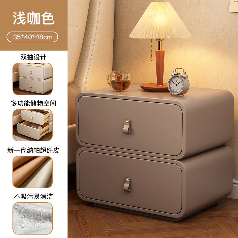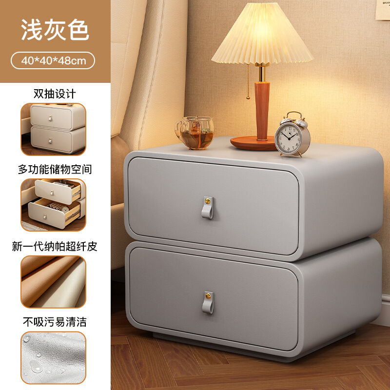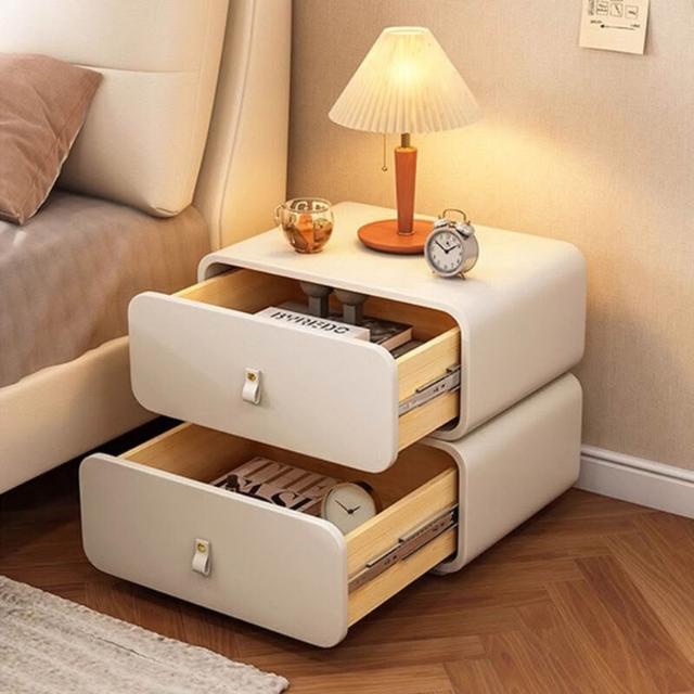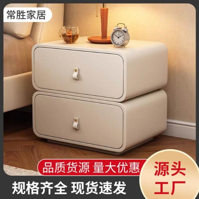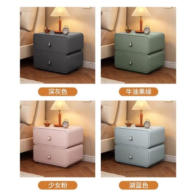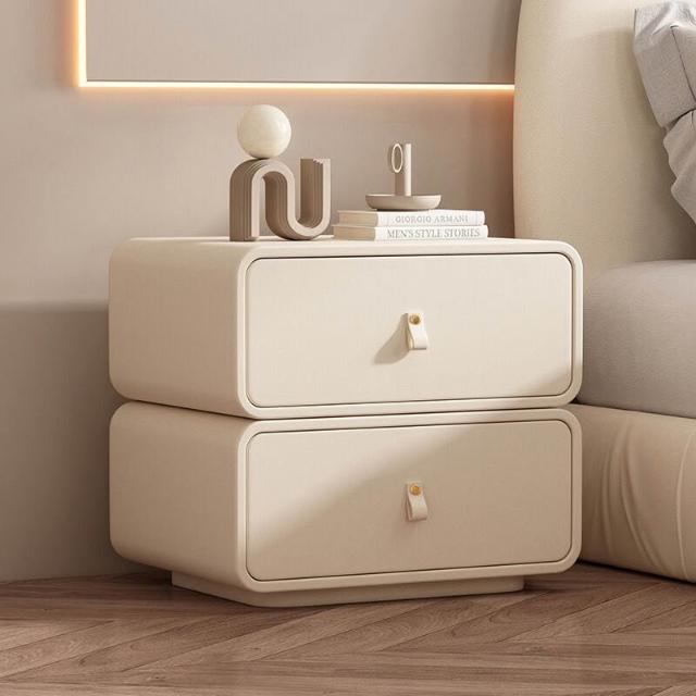 比比優 奶油風床頭臥室櫃家用床邊櫃高級感輕奢皮質收納櫃免安裝床頭櫃子 床頭 便捷