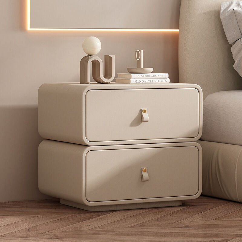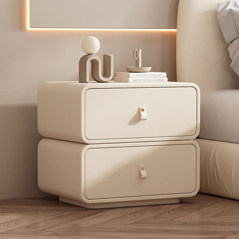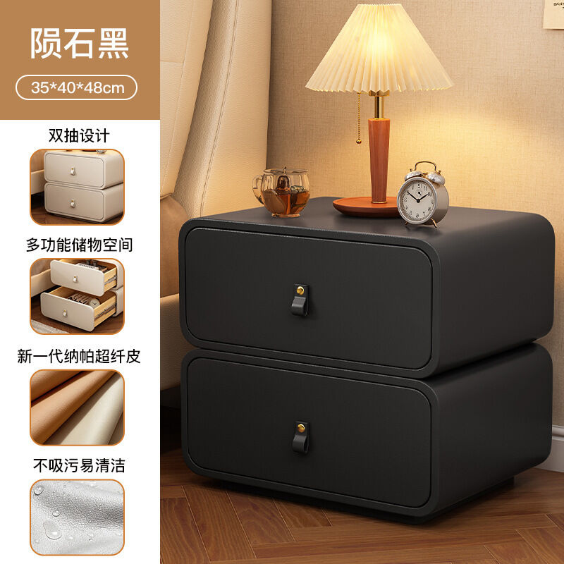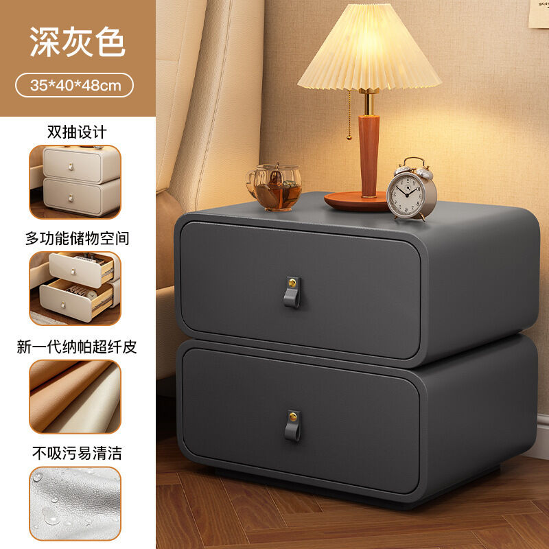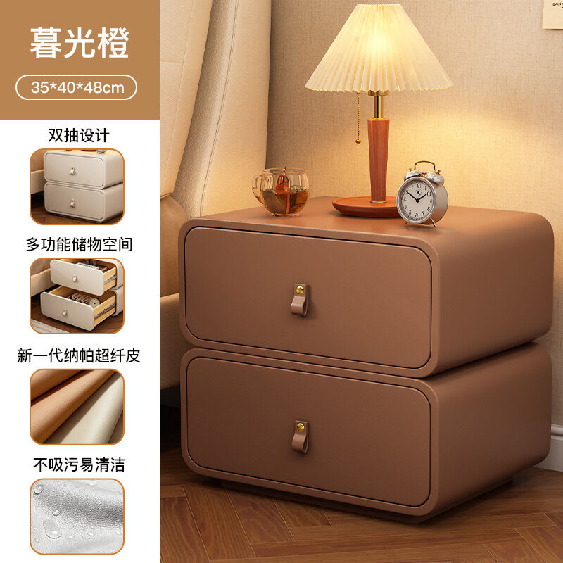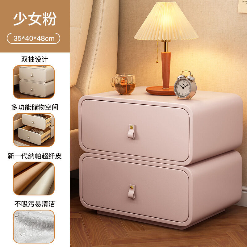 比比優 奶油風床頭臥室櫃家用床邊櫃高級感輕奢皮質收納櫃免安裝床頭櫃子 床頭 便捷
