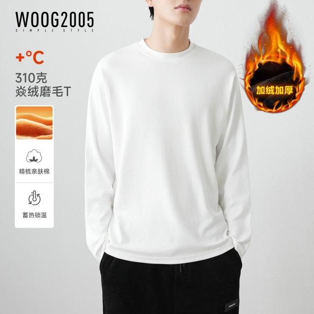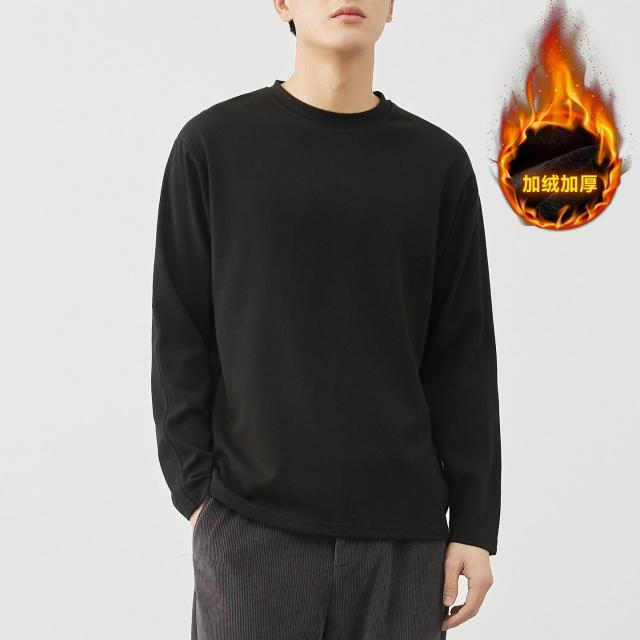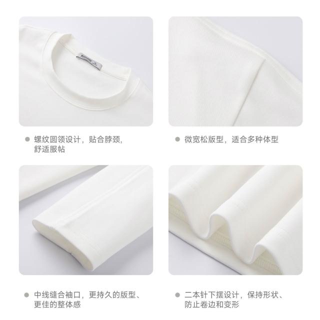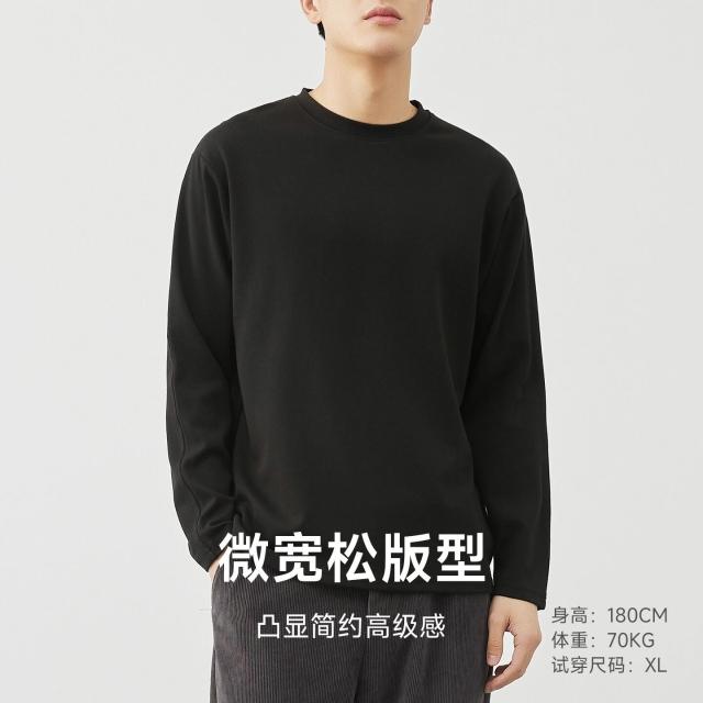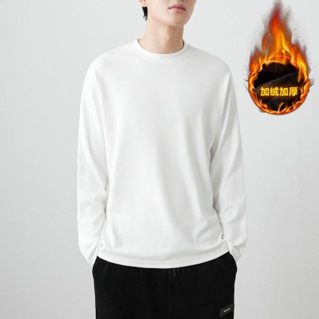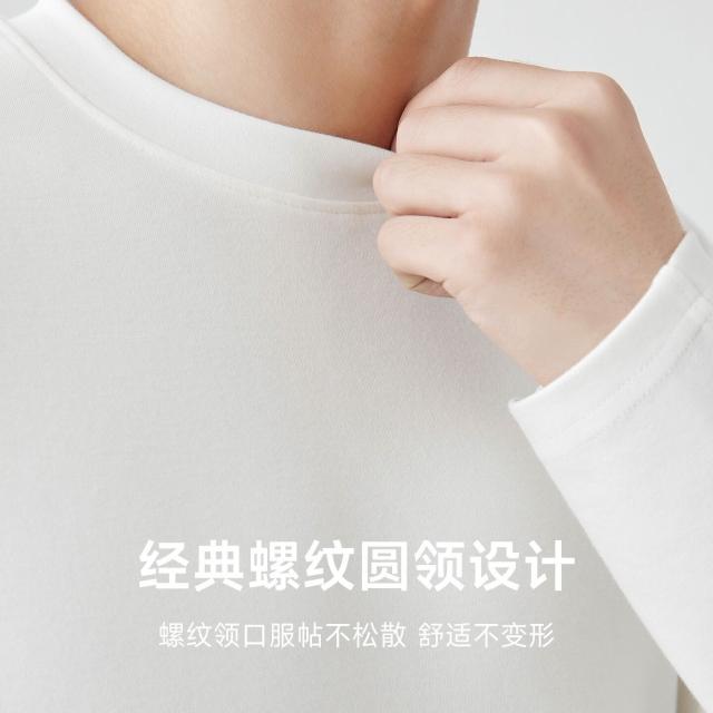 比比優 310g精梳親膚棉白色加厚純棉長袖t恤男2025春秋季純色內搭打底衫 打底 T恤 POLO 內搭