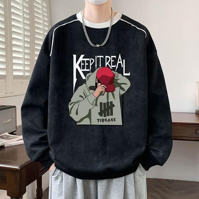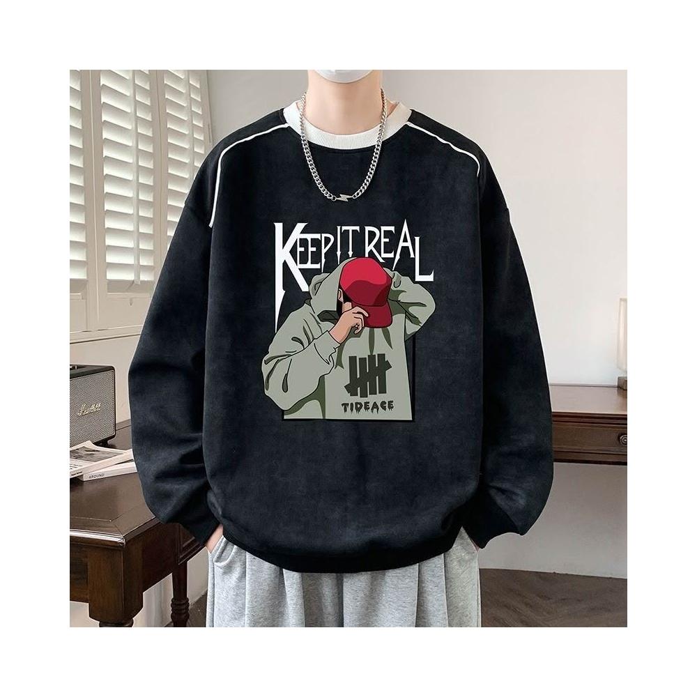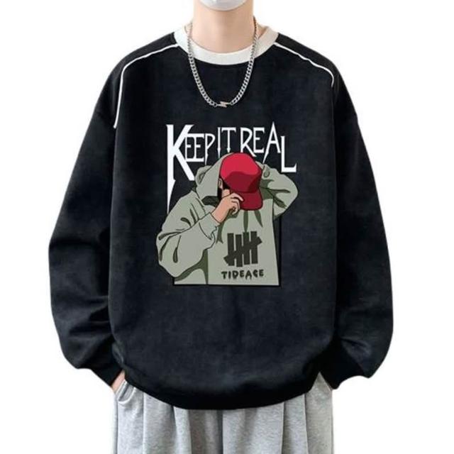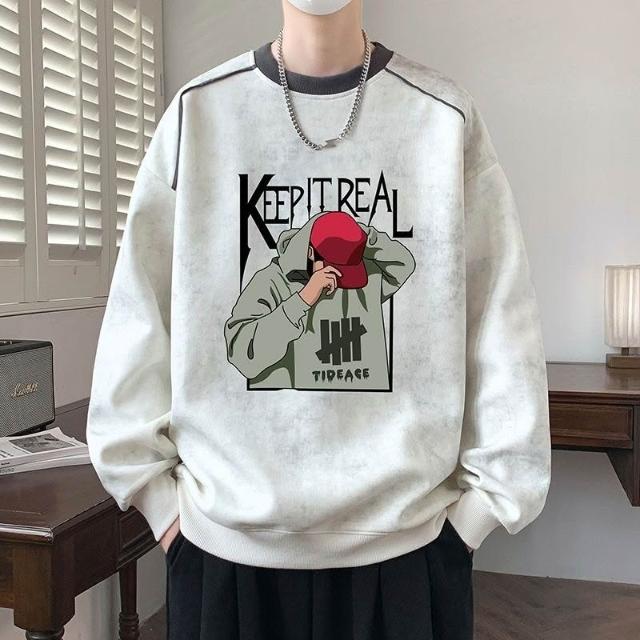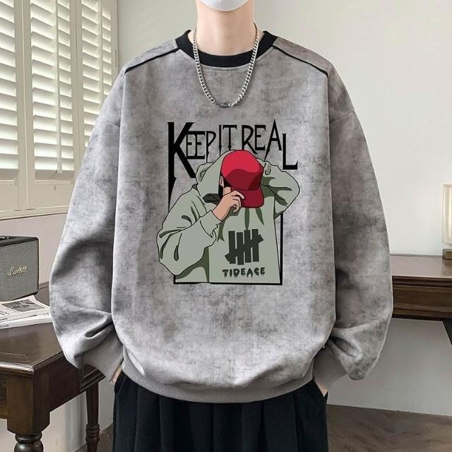 比比優 春秋季圓領衛衣男潮流大碼美式印花長袖t恤青少年內搭衣服打底衫 打底 T恤 POLO 內搭