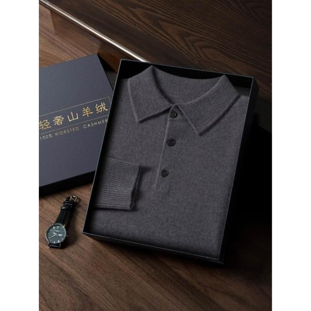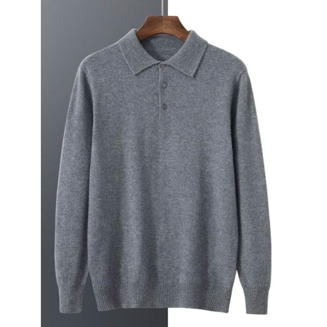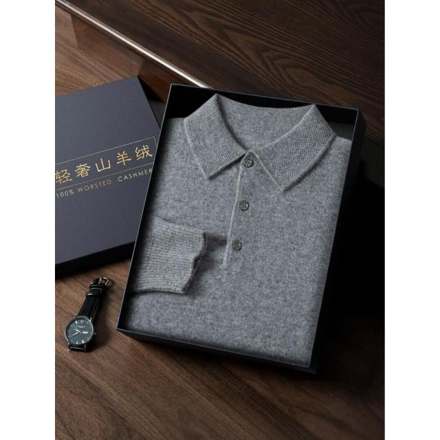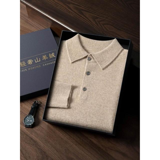 比比優 新款男式山羊絨衫平面男款POLO領輕奢商務毛衣純羊絨針織打底衫男 打底 T恤 POLO 內搭