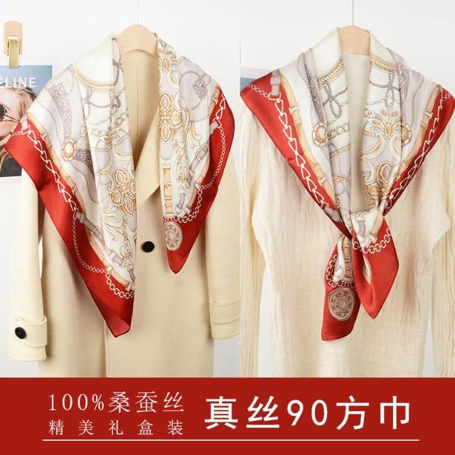比比優精選 真絲90方巾禮盒裝 杭州絲綢禮品100桑蠶絲絲巾新款 真絲 禮物 送人