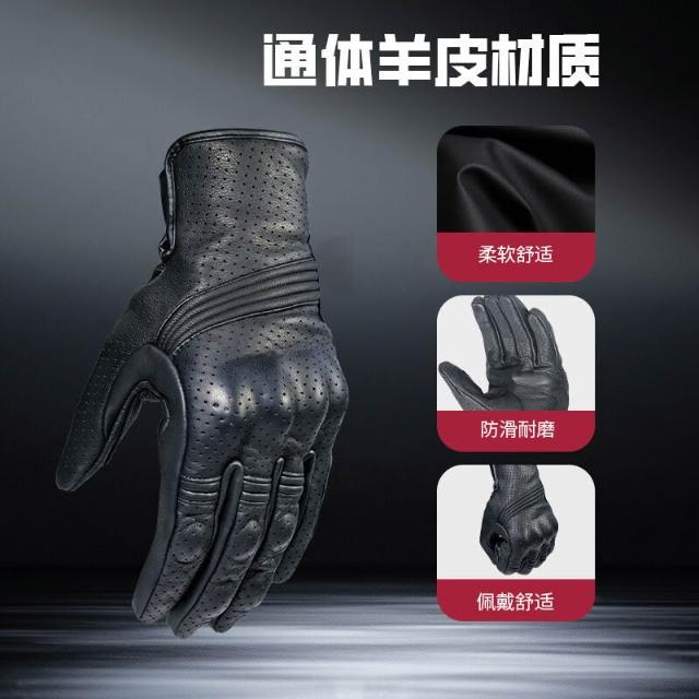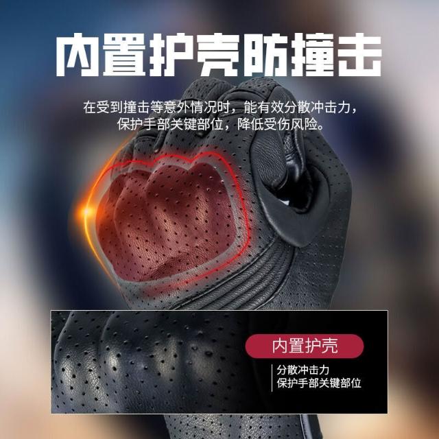 比比優精選 摩托車騎行手套四季通用防摔可觸屏賽車手套打孔透氣全皮賽車手套