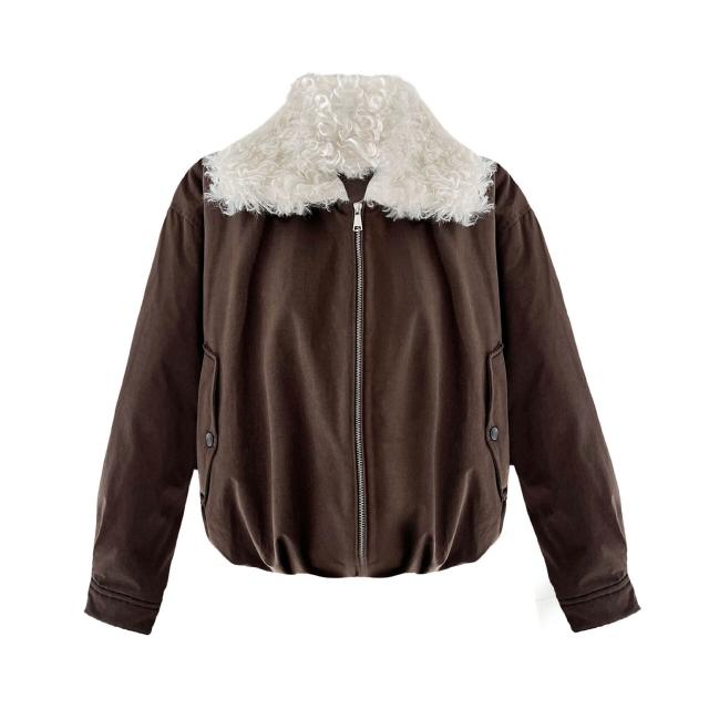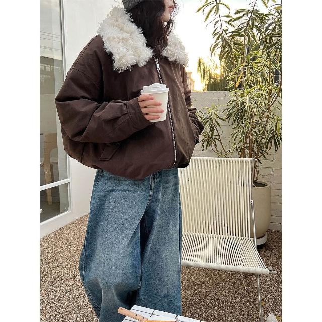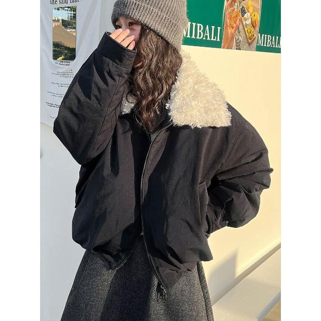 比比優 美式復古巴恩風90白鴨絨冬季外套短款毛領派克羽絨服女Y86 羽絨外套