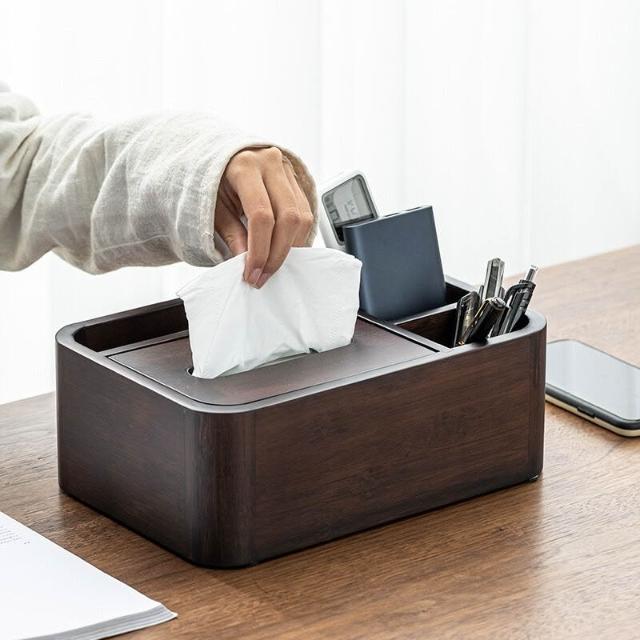 比比優 中式竹製紙巾盒中式現代輕奢抽紙盒客廳辦公室桌面高檔收納整理盒