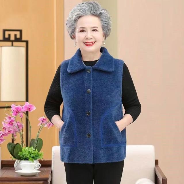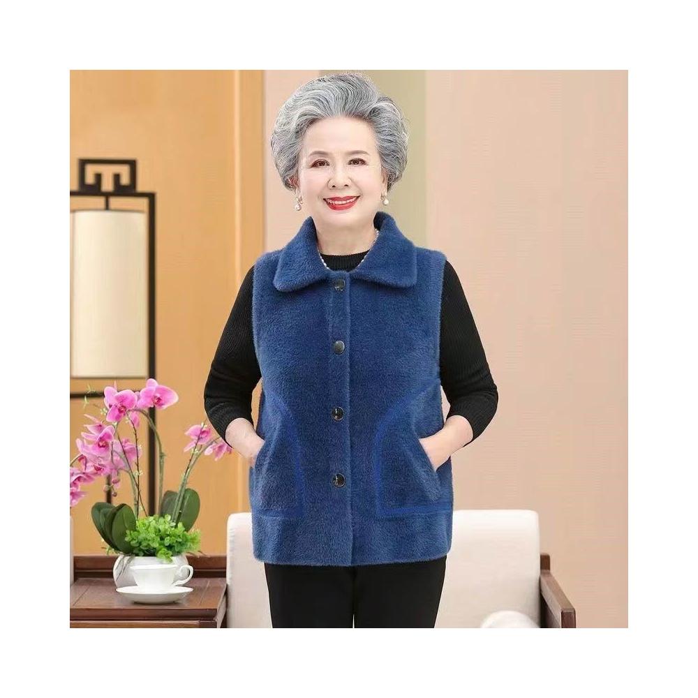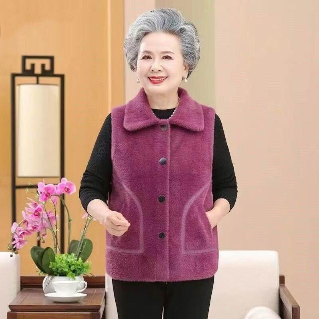 比比優 六十歲媽媽裝秋冬馬甲洋氣款中老年女裝水貂絨背心保暖奶奶裝外套