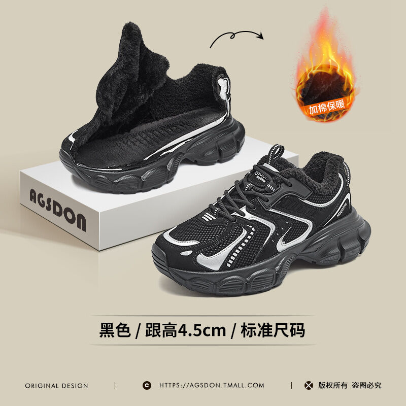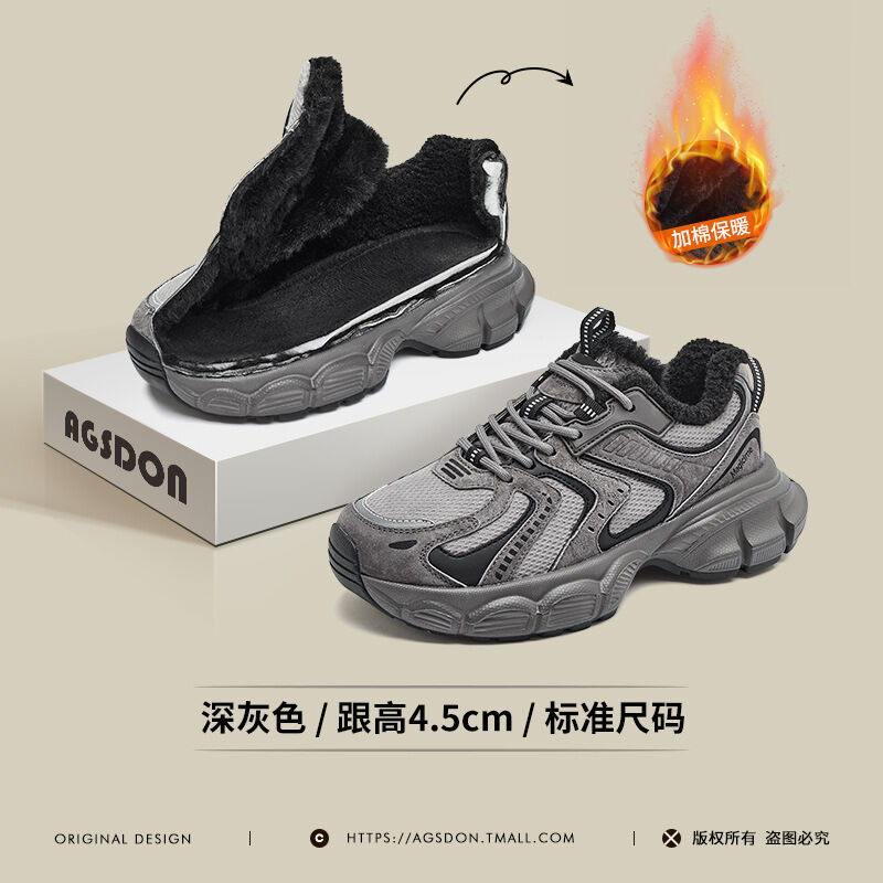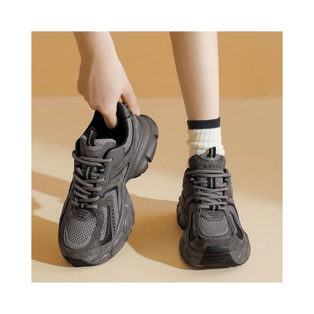 比比優 奧古獅登灰色老爹鞋女2026年春季新款厚底輕便加絨運動休閑鞋ins