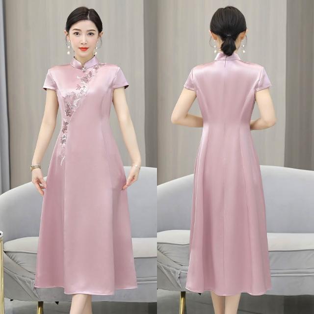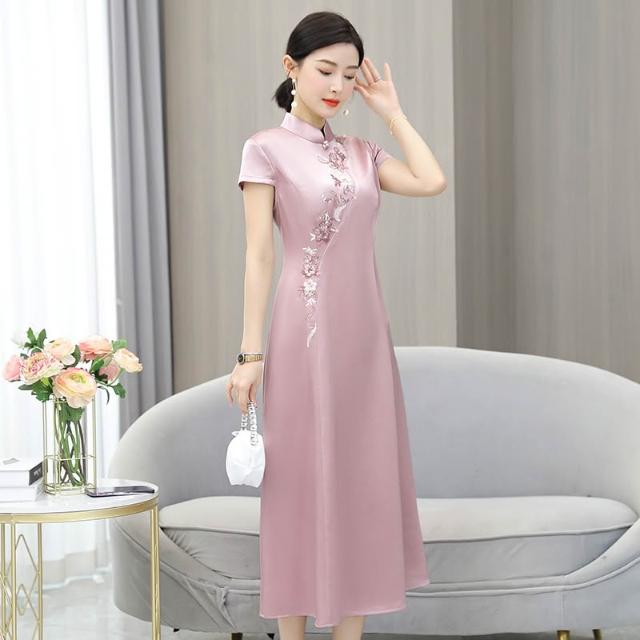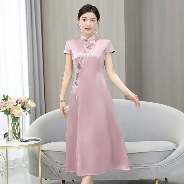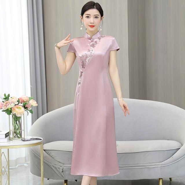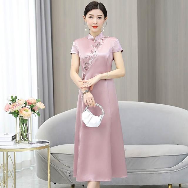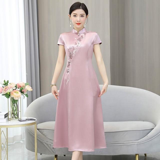 新款夏季連衣裙 6170#2023新款婚禮媽媽裝連衣裙喜婆婆婚宴禮服高端結婚夏 比比優