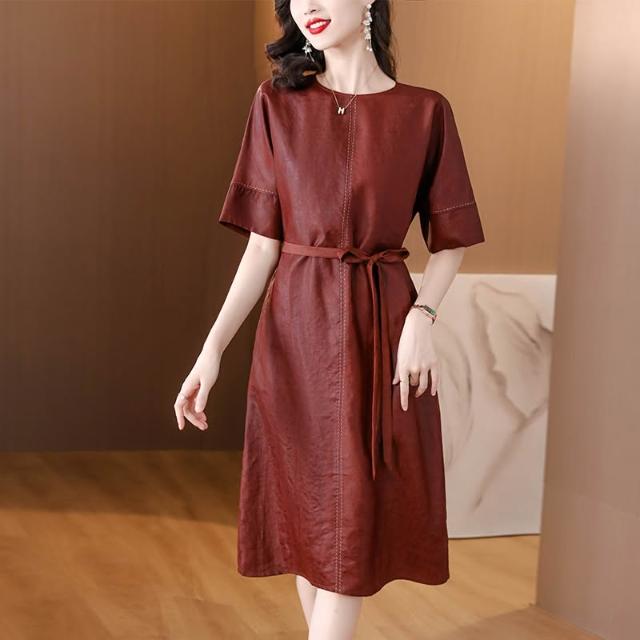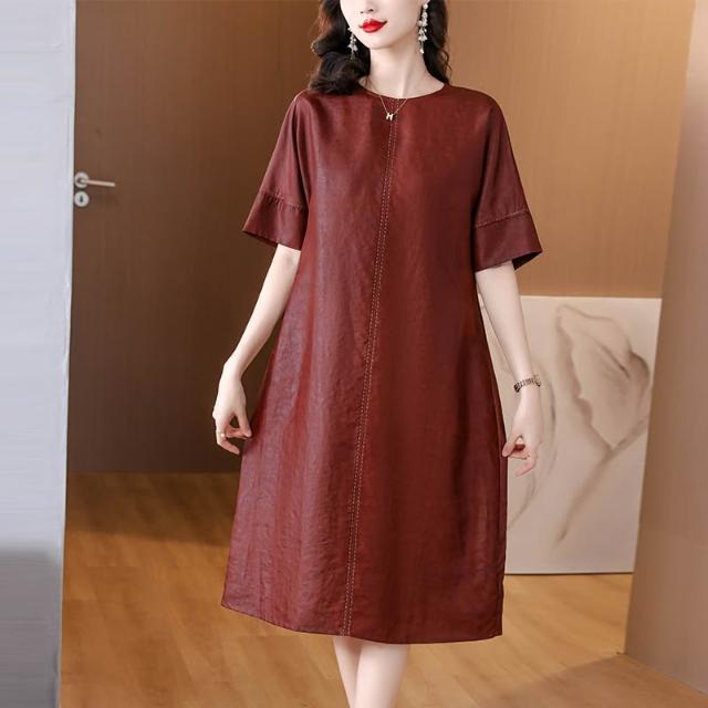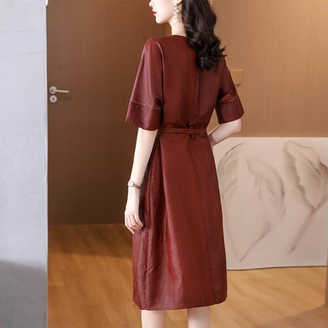 新款夏季連衣裙 龜紋香雲紗連衣裙女2023新款大碼夏裝媽媽杭州桑蠶絲真絲裙子 比比優
