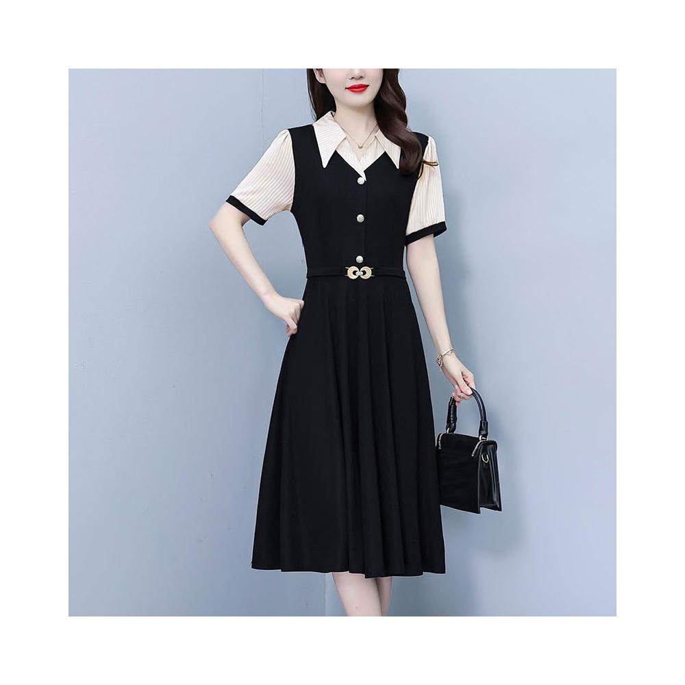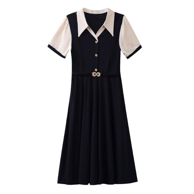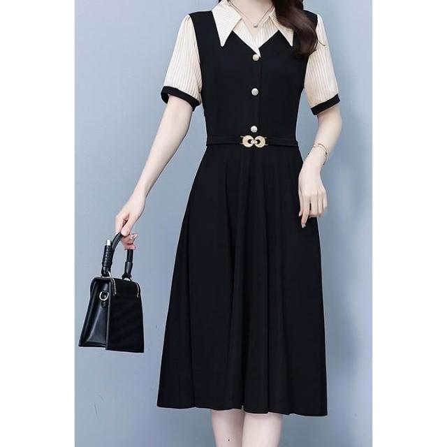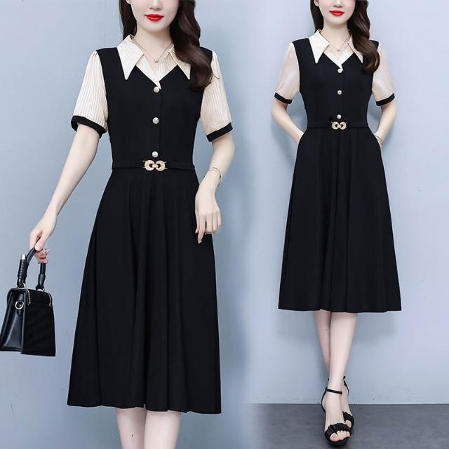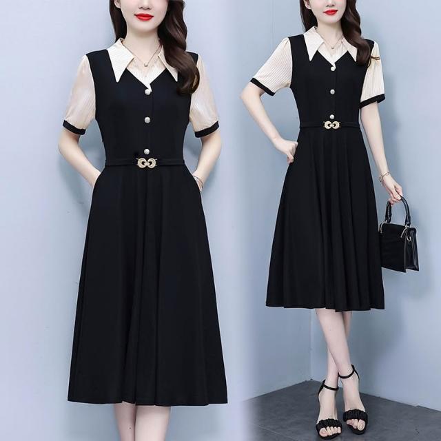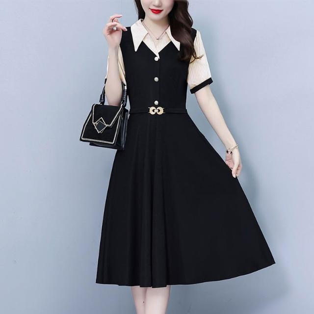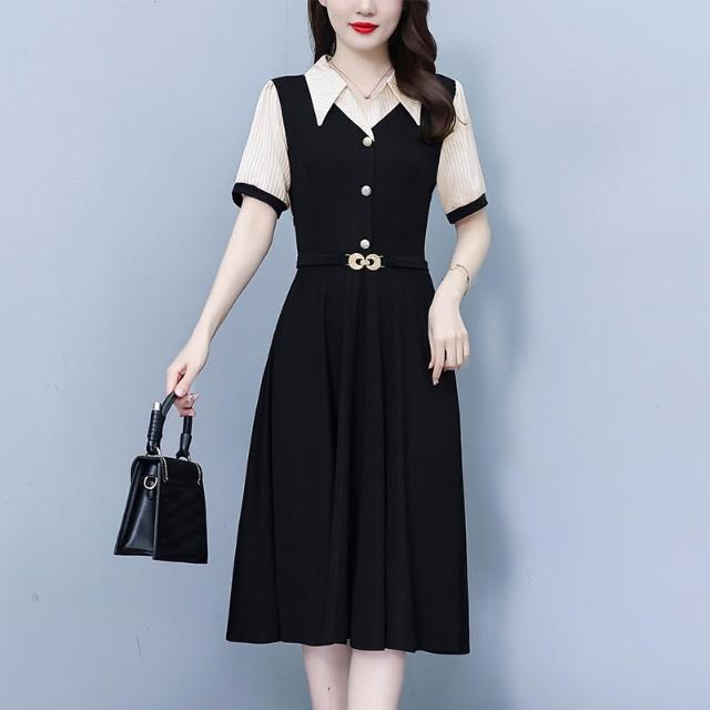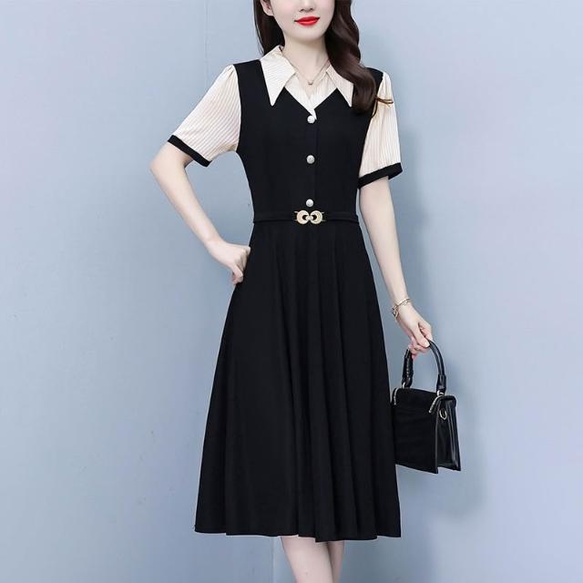 新款夏季連衣裙 2026高端夏季時尚拼接媽媽裝韓版顯瘦遮肚氣質收腰減齡連衣裙 比比優