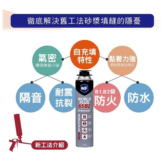 韓國補洞修繕神器 World Plus 65 B2等級 PU阻燃發泡填縫劑(專業型-另建議加購施工槍+清潔劑)