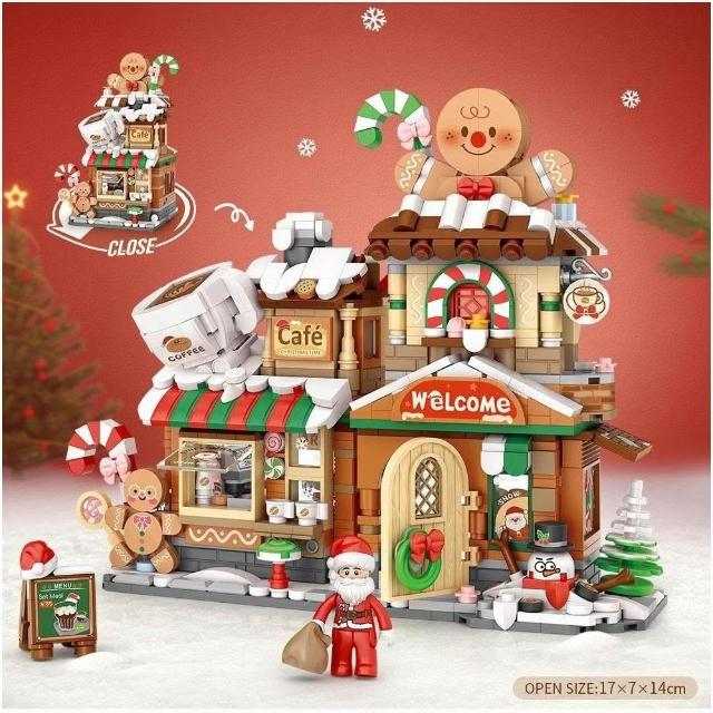 LOZ聖誕節商店街系列-LOZ4811聖誕商店 / LOZ4812 薑餅咖啡屋 摺疊商店街景