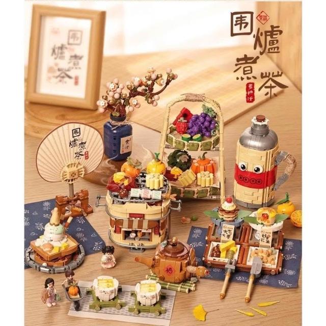 LOZ圍爐煮茶積木系列 復古爐具 茶水組合 甜心套餐 美食拼盤 loz1388 1389 1390 1391 新年積木