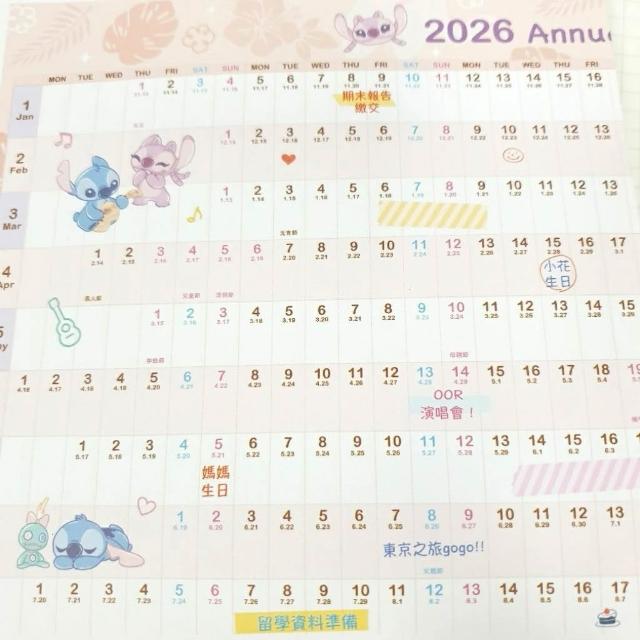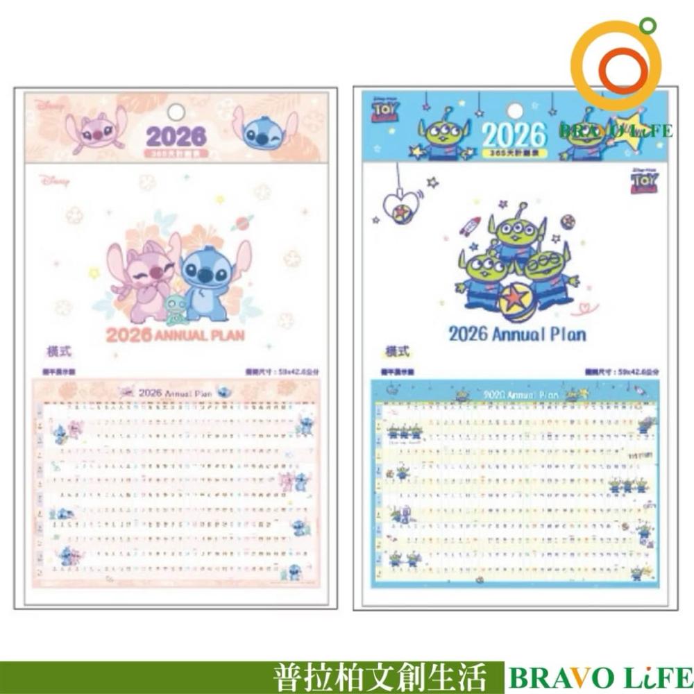 2026年 迪士尼365天計畫表 三眼怪 年度計畫表 史迪奇 行程規劃表 安琪拉 生活計畫表 行事曆 台灣製