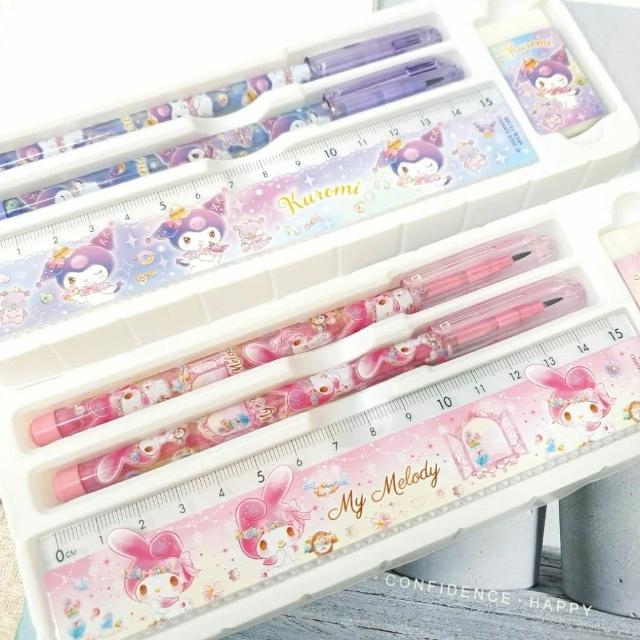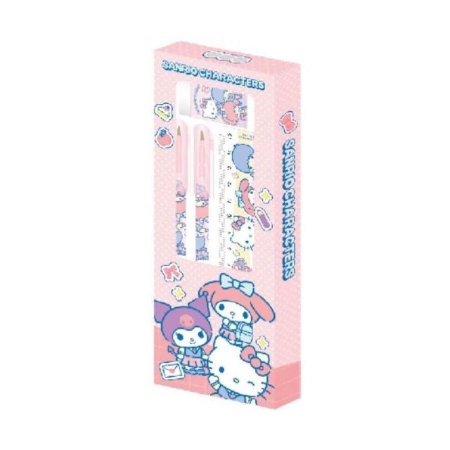 三麗鷗 文具四件組 kitty 文具組 酷洛米 美樂蒂 大耳狗 布丁狗 免削鉛筆 尺 橡皮擦 可愛文具禮盒